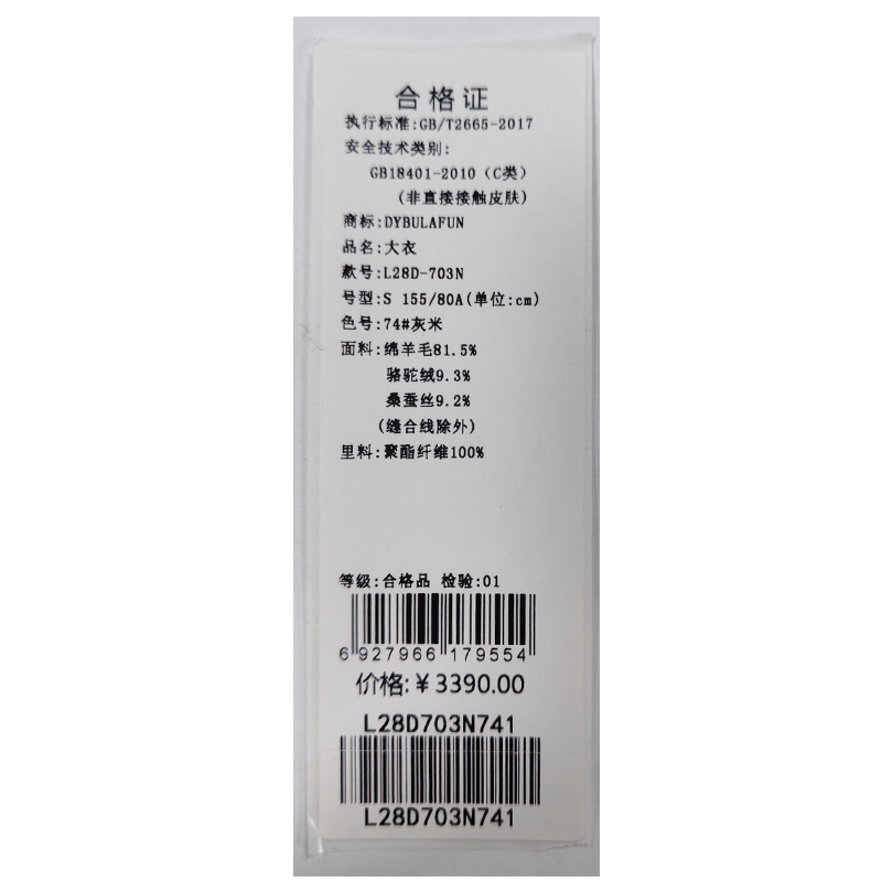 戴布拉芬大衣L28D703N