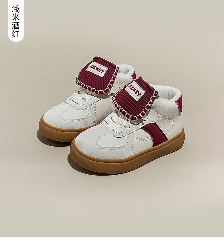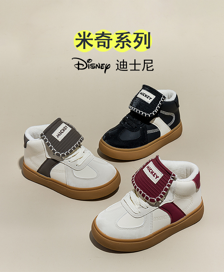迪士尼中大童高帮板鞋冬季款亲子鞋百搭加绒休闲鞋防滑轻便运动鞋ZY24D009