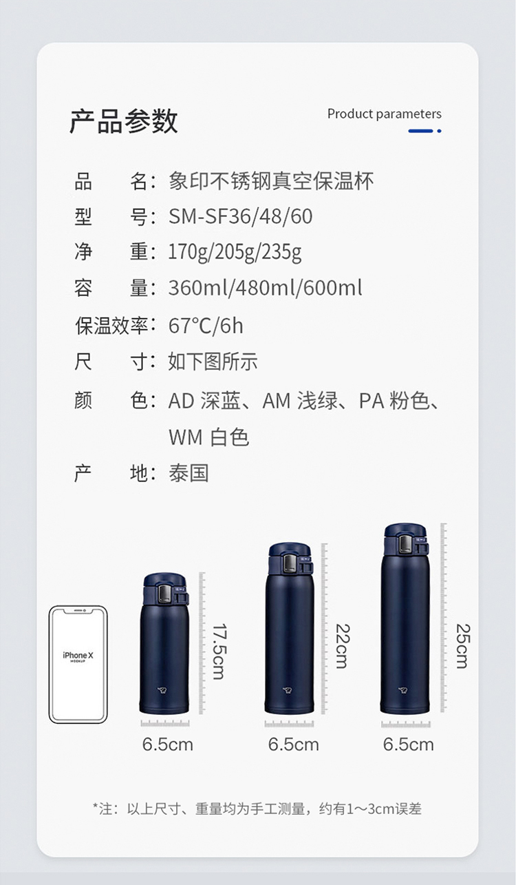 象印保温杯 SM-SF48-AD深蓝色 480ml