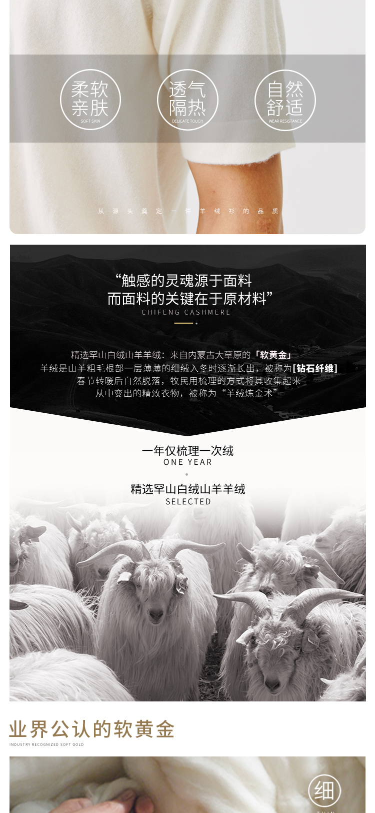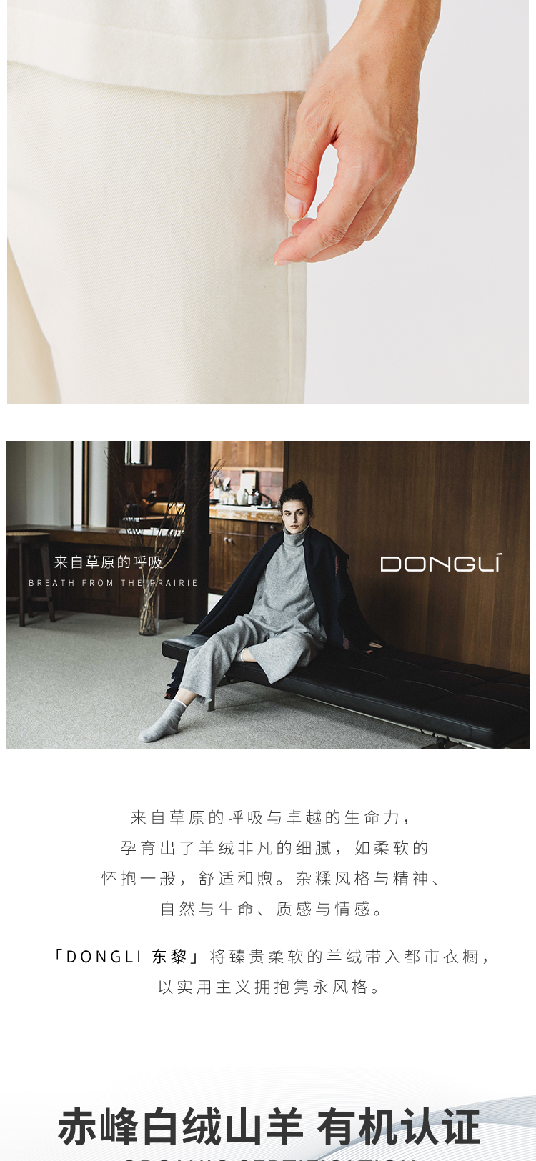 东黎羊绒是赤峰东荣集团自主品牌,自有牧场/羊绒制品全产业链优势,实现了羊绒从“牧场”到“商场”的华丽转变。