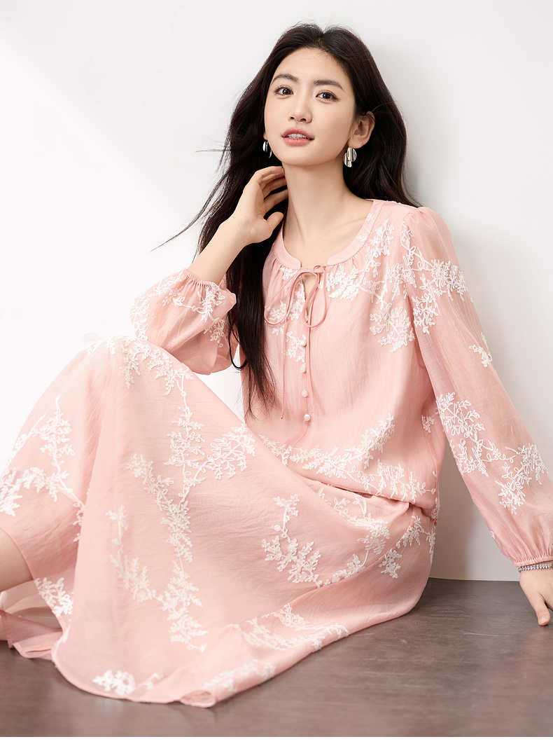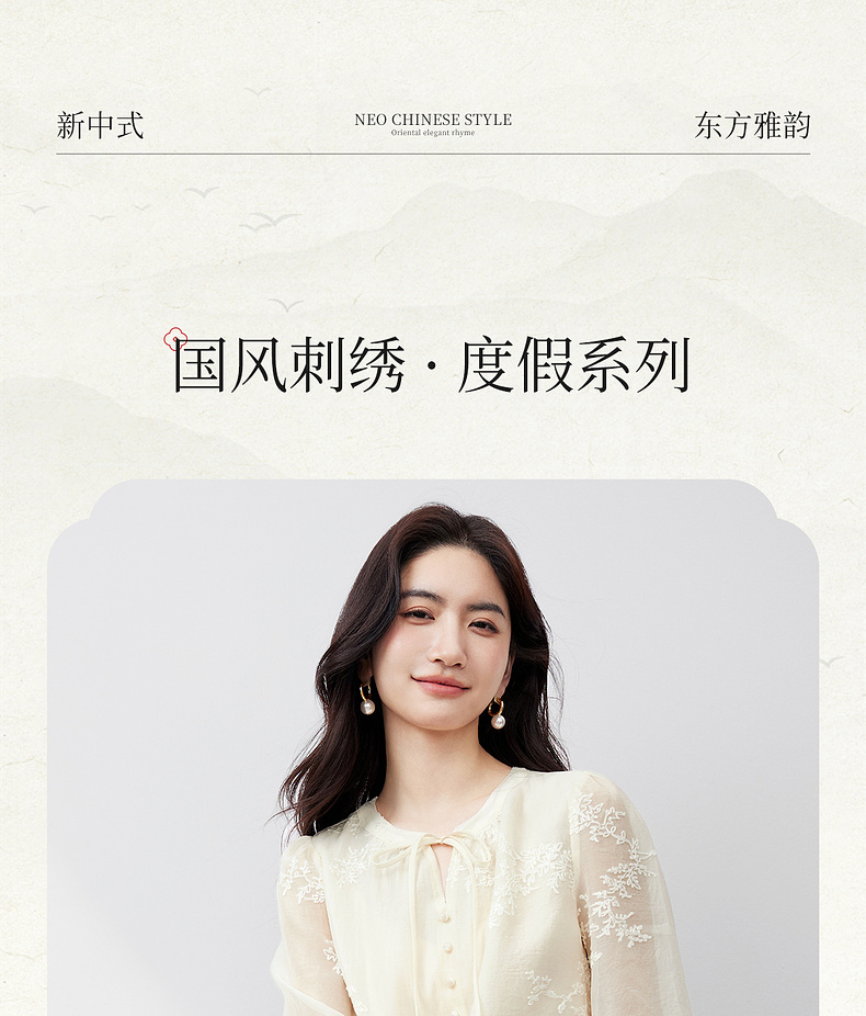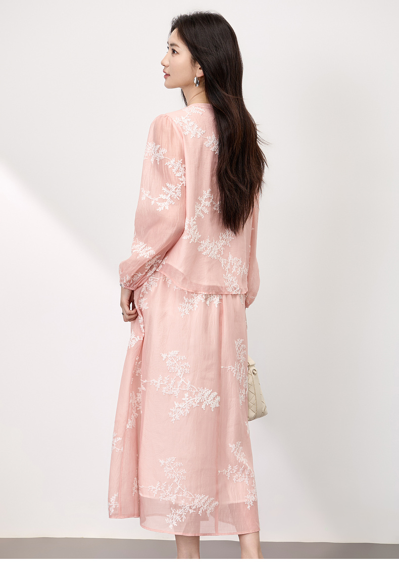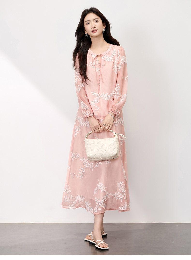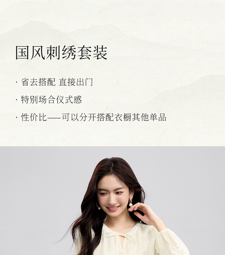 151Z58221国风新中式浪漫系绑带上衣A字半裙国风刺绣套装-RJ054