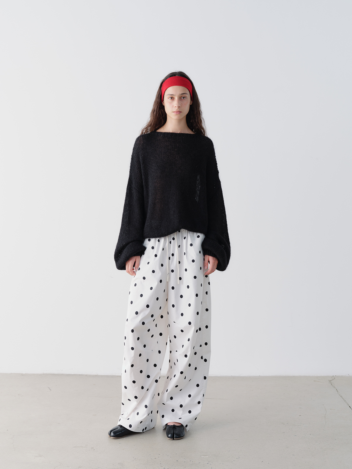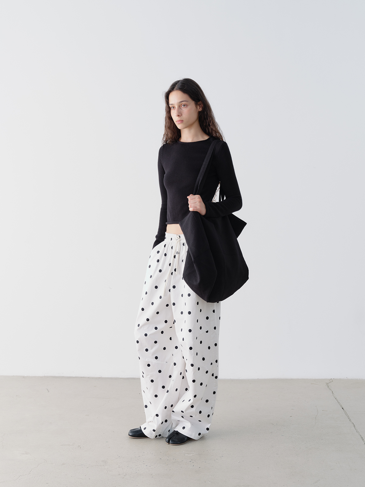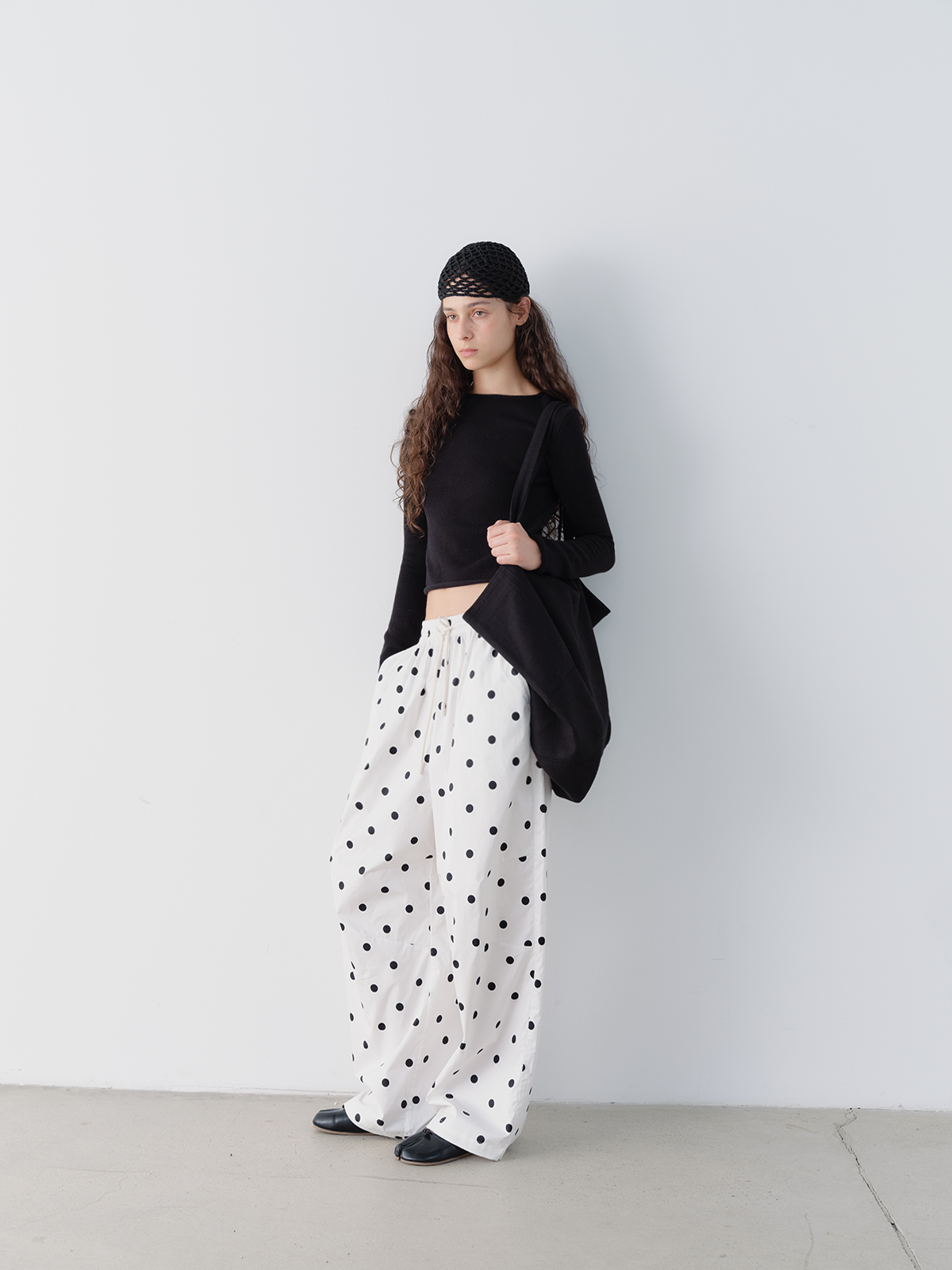 shyshystill/shy202506046/白色棉质大波点抽绳休闲宽松长裤