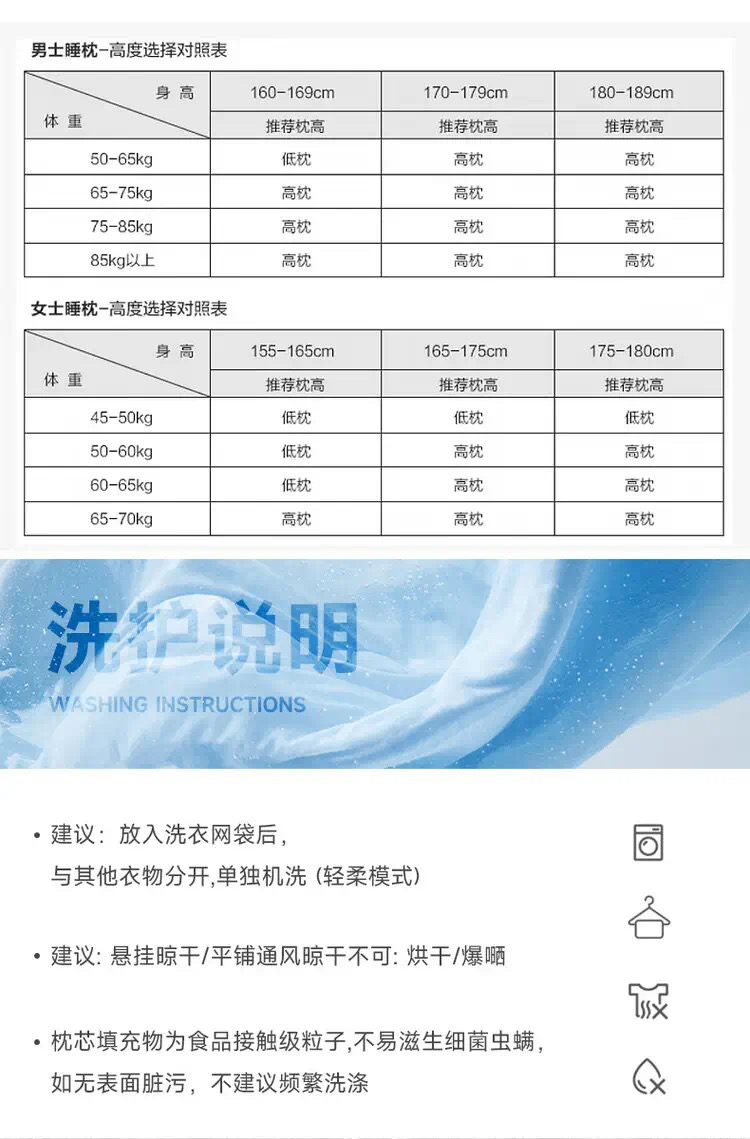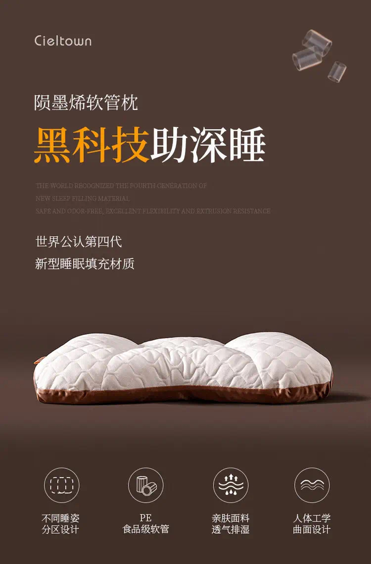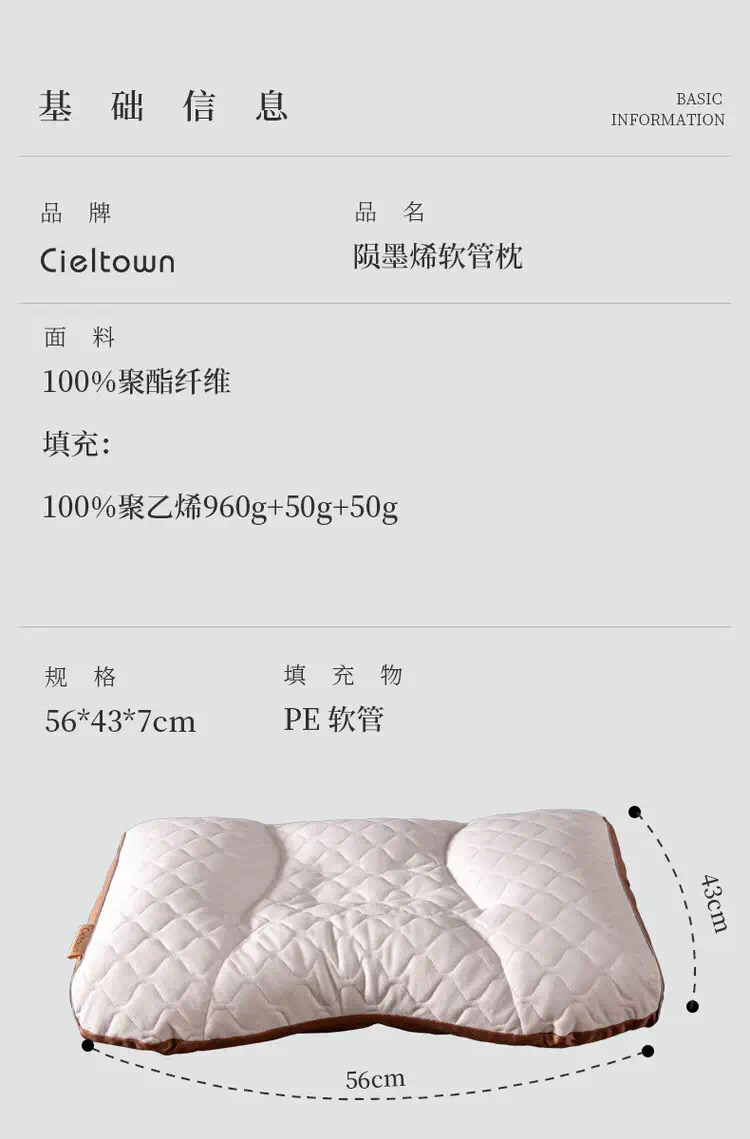 Cieltown/夏尔小镇PE枕头护颈椎助睡眠枕芯单人家用陨墨烯软管枕 陨墨烯软管枕