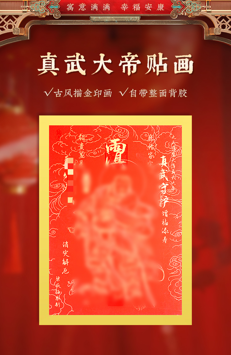 原创真武大di斗姆元jun雷zu妈zu关圣di君文chang帝jun贴画古风描金印画