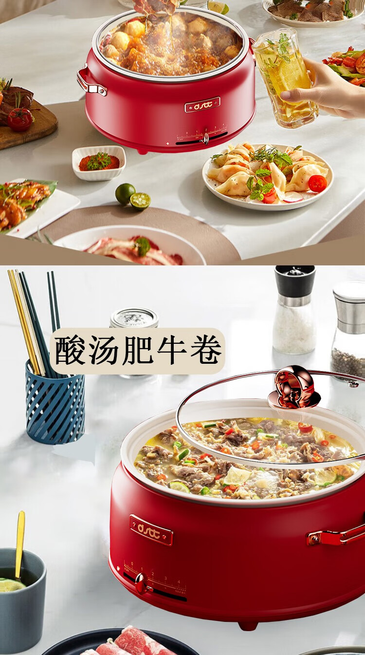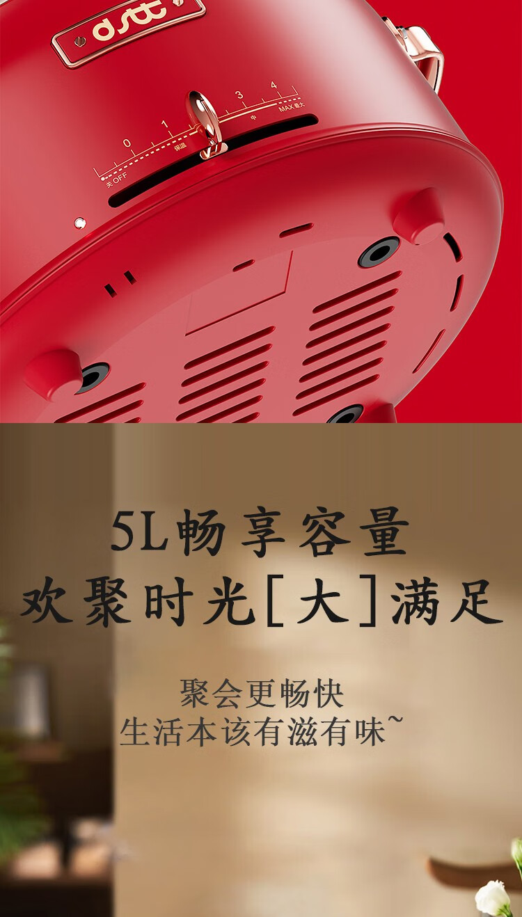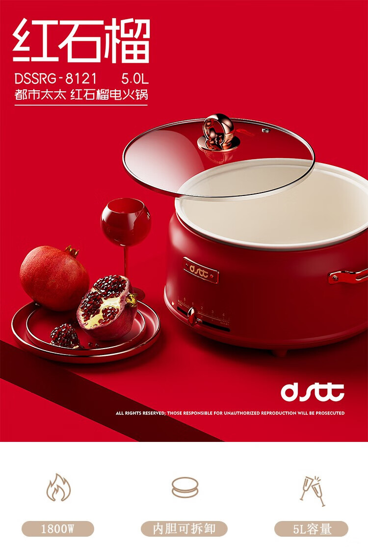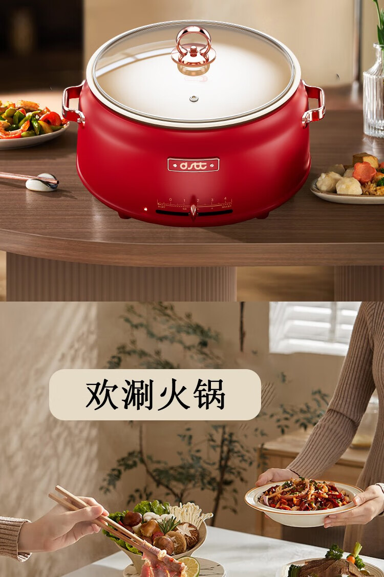 都市太太都市太太红石榴多功能电热锅5L大容量1800W大火力多功能家用一体锅