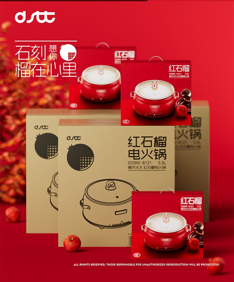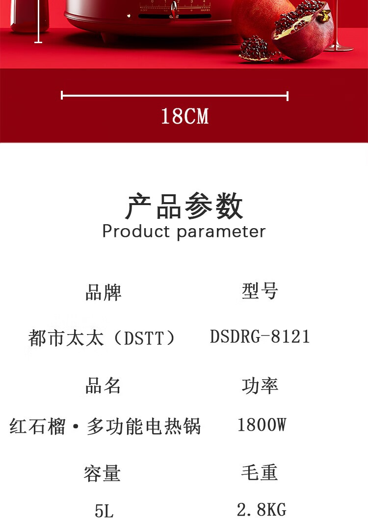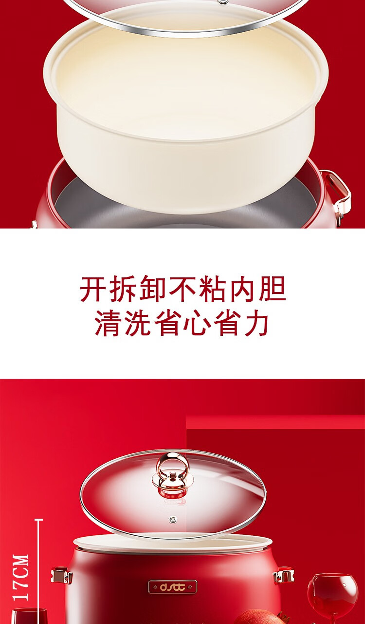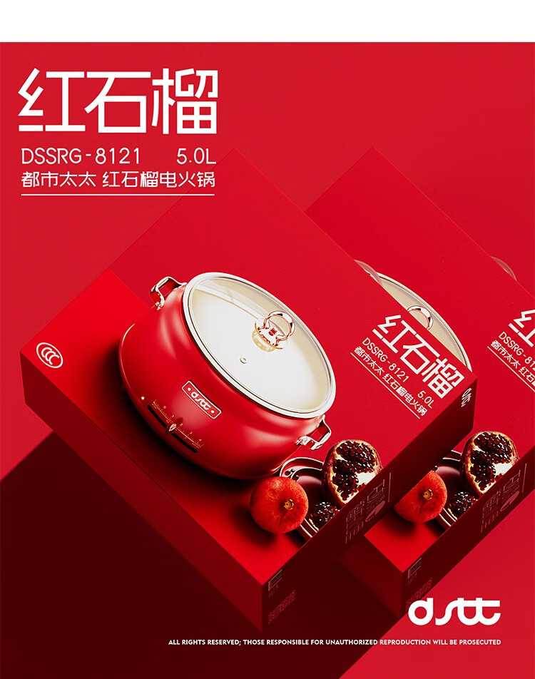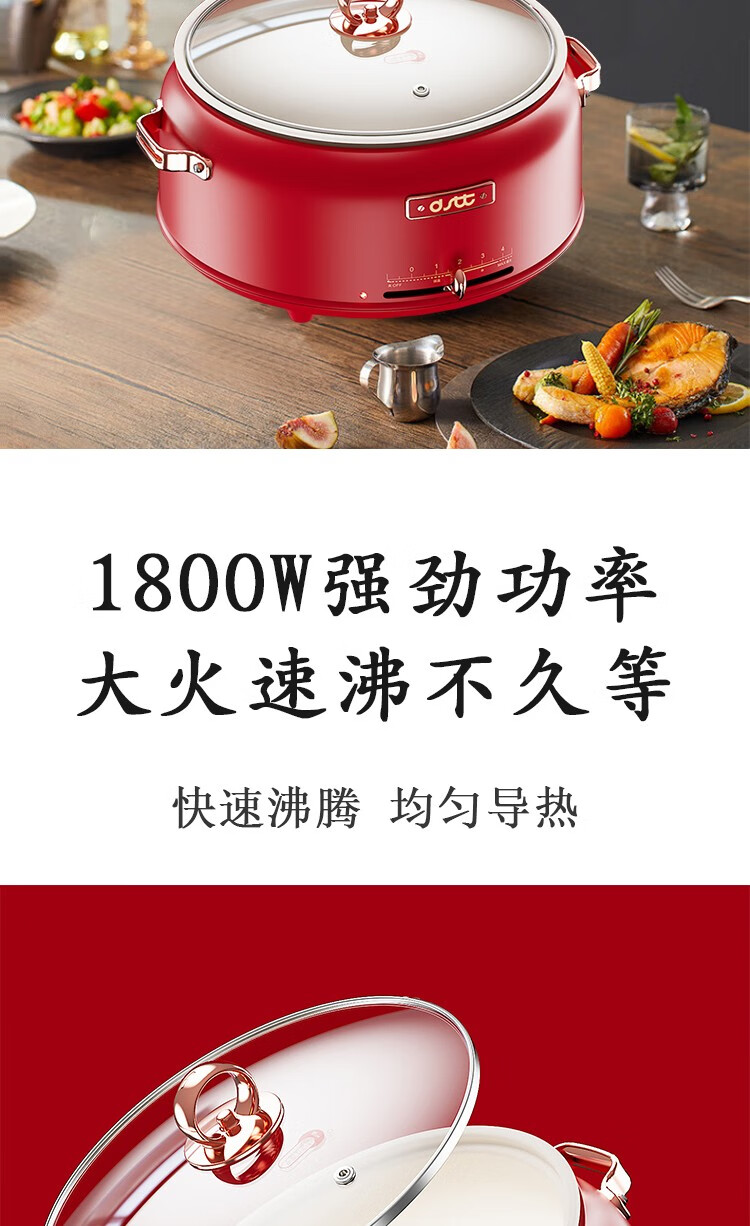 都市太太都市太太红石榴多功能电热锅5L大容量1800W大火力多功能家用一体锅