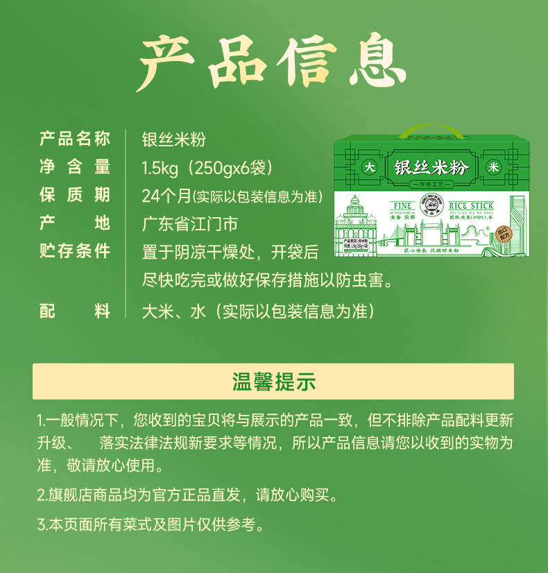 双燕牌 礼盒装银丝米粉1.5kg(250g*6小袋)