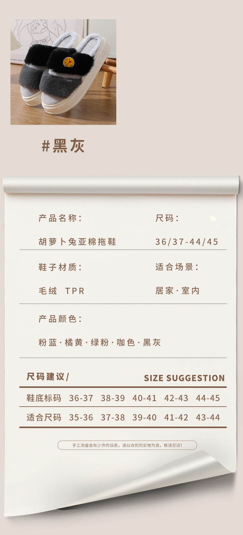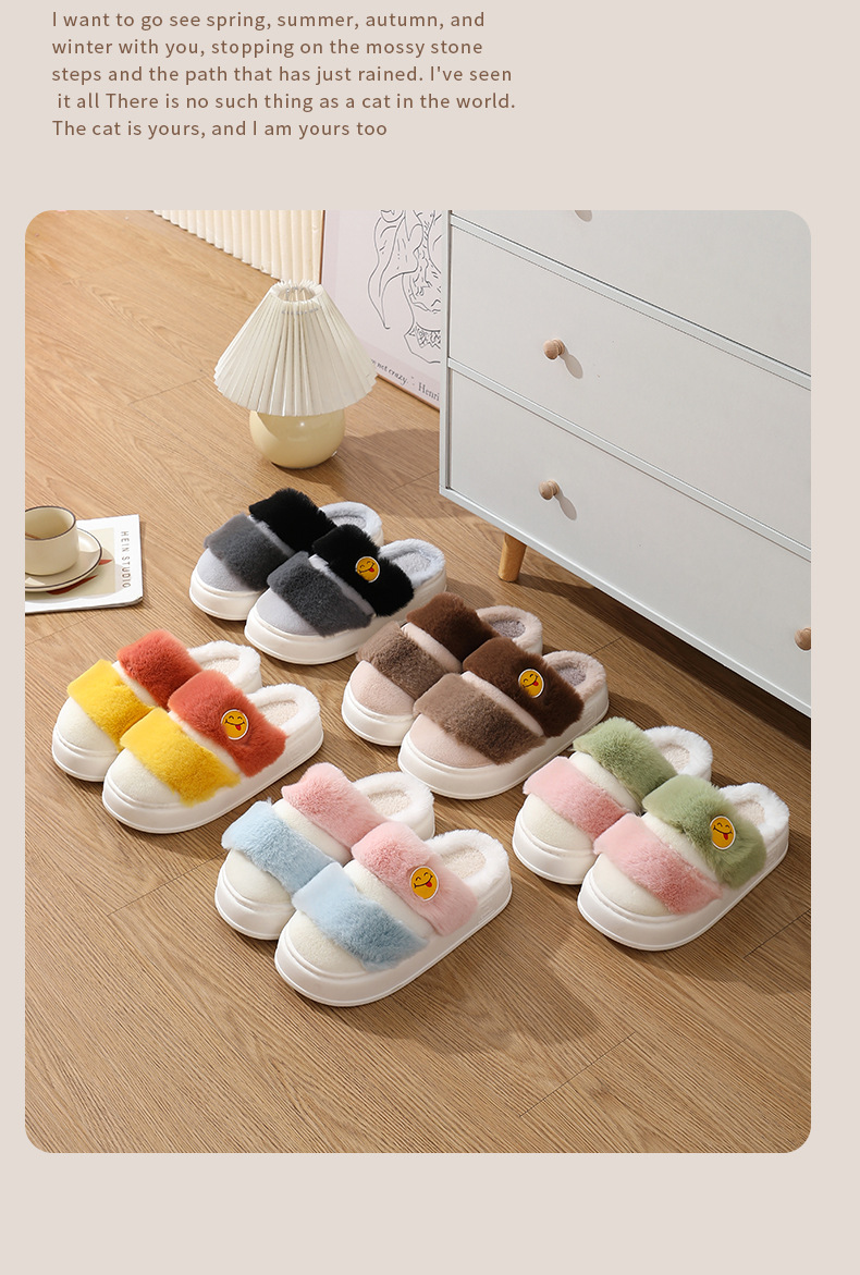秋冬【室内外情侣棉拖鞋女】保暖防滑 毛绒托鞋 卡通厚底 月子棉鞋