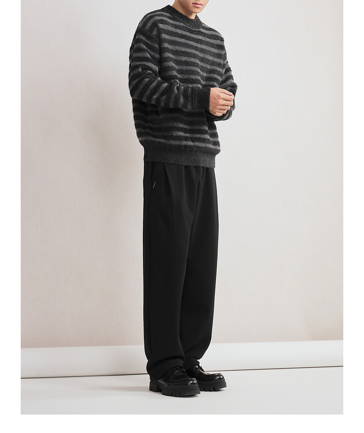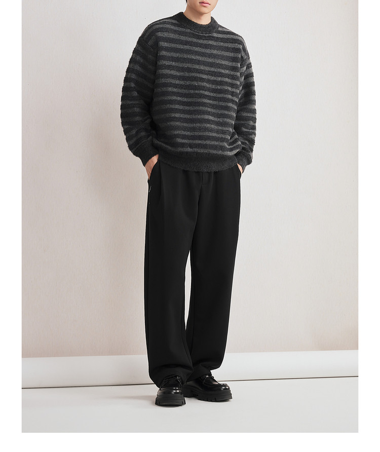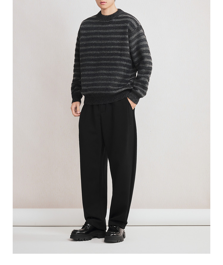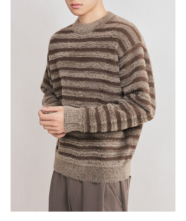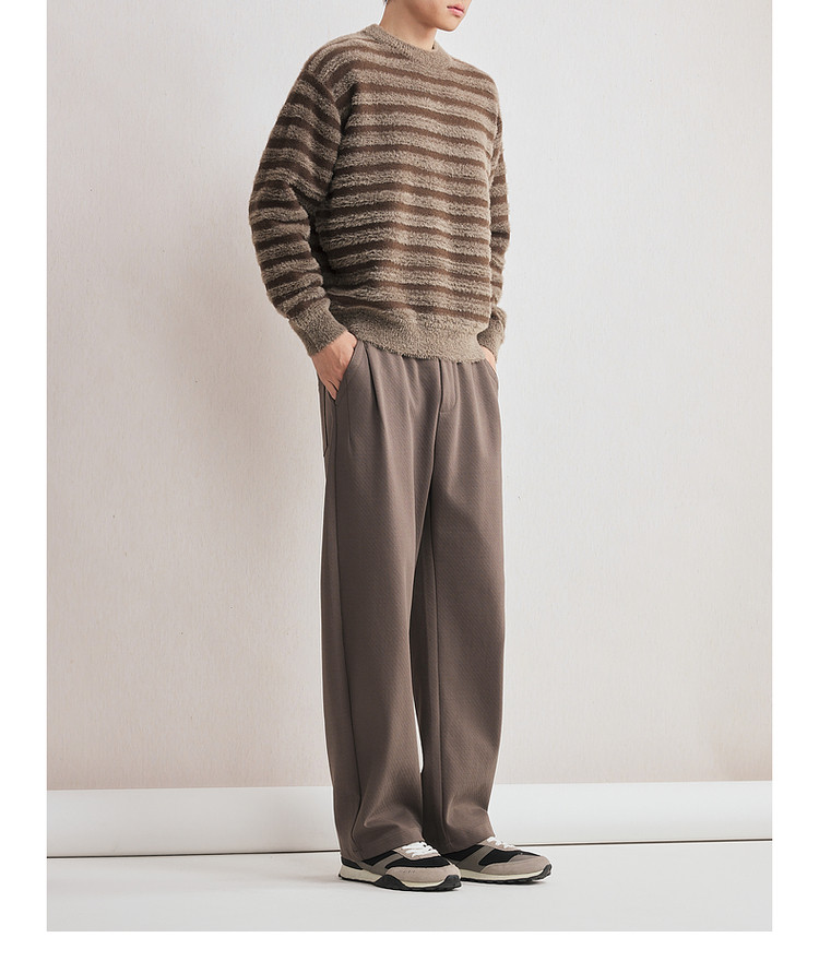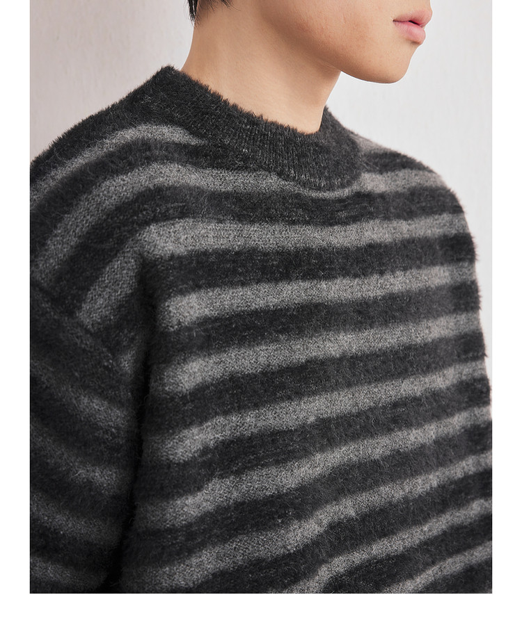 墨麦客男装2025年冬季仿貂绒圆领条纹针织衫男士套头绒感打底衫男