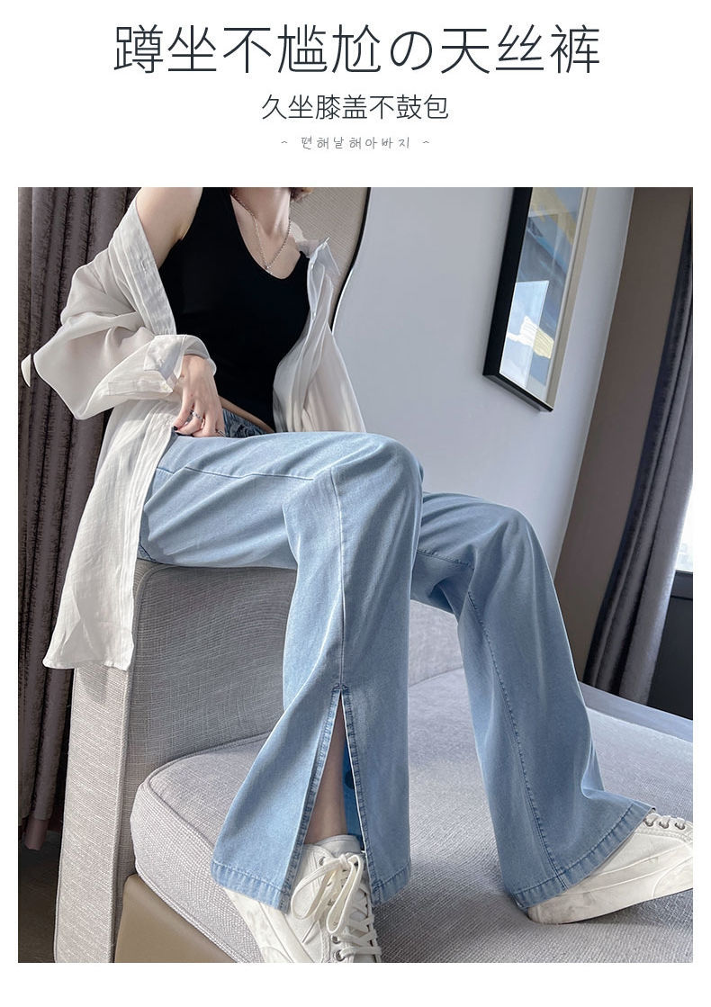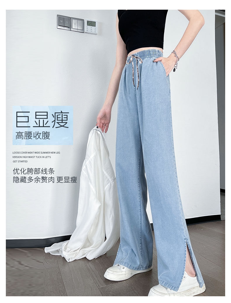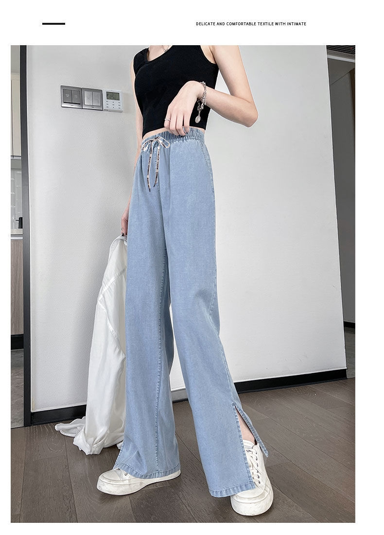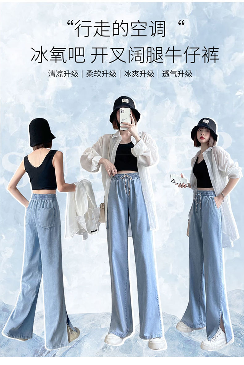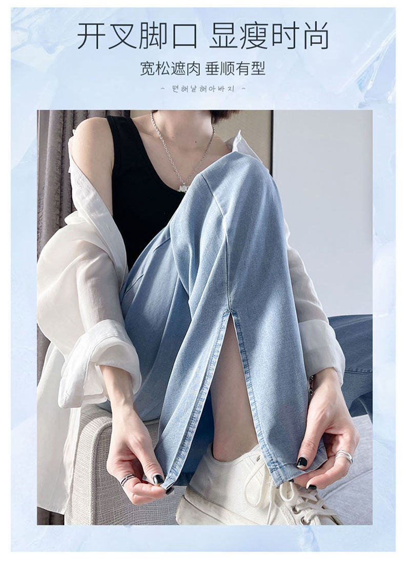 黛唯梵超薄冰丝牛仔裤薄款新款开叉阔腿裤女高腰垂感宽松显瘦休闲裤子