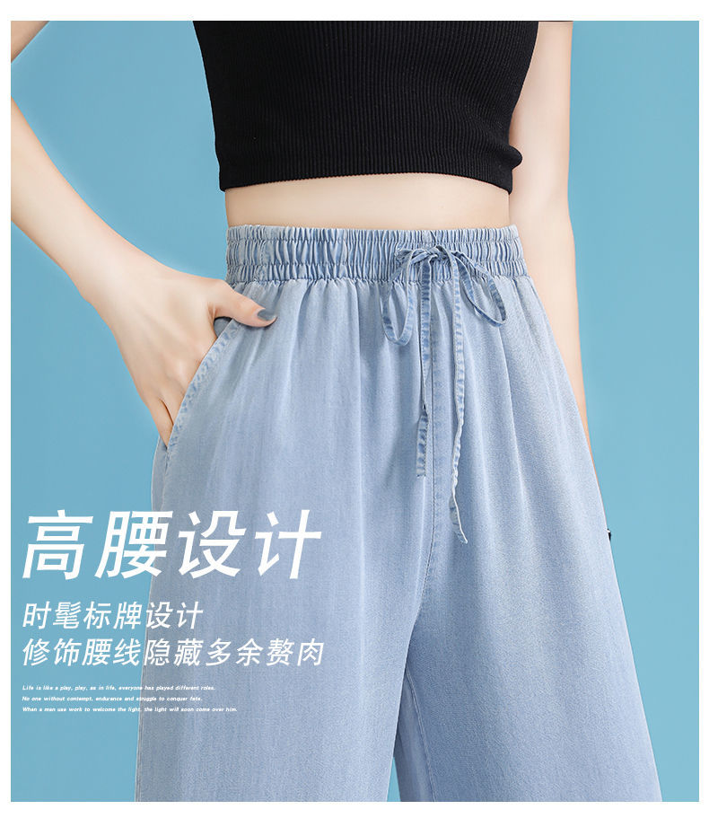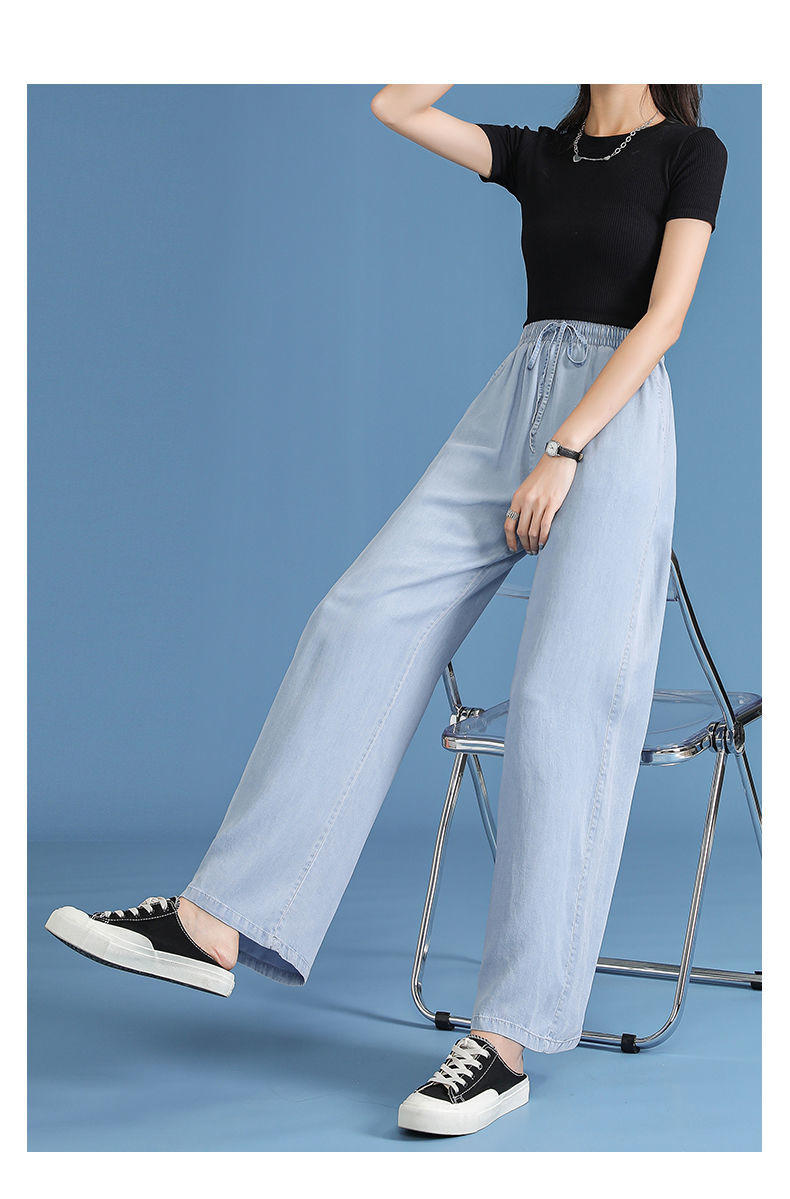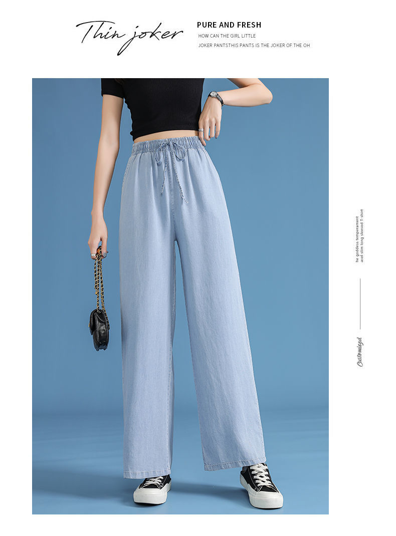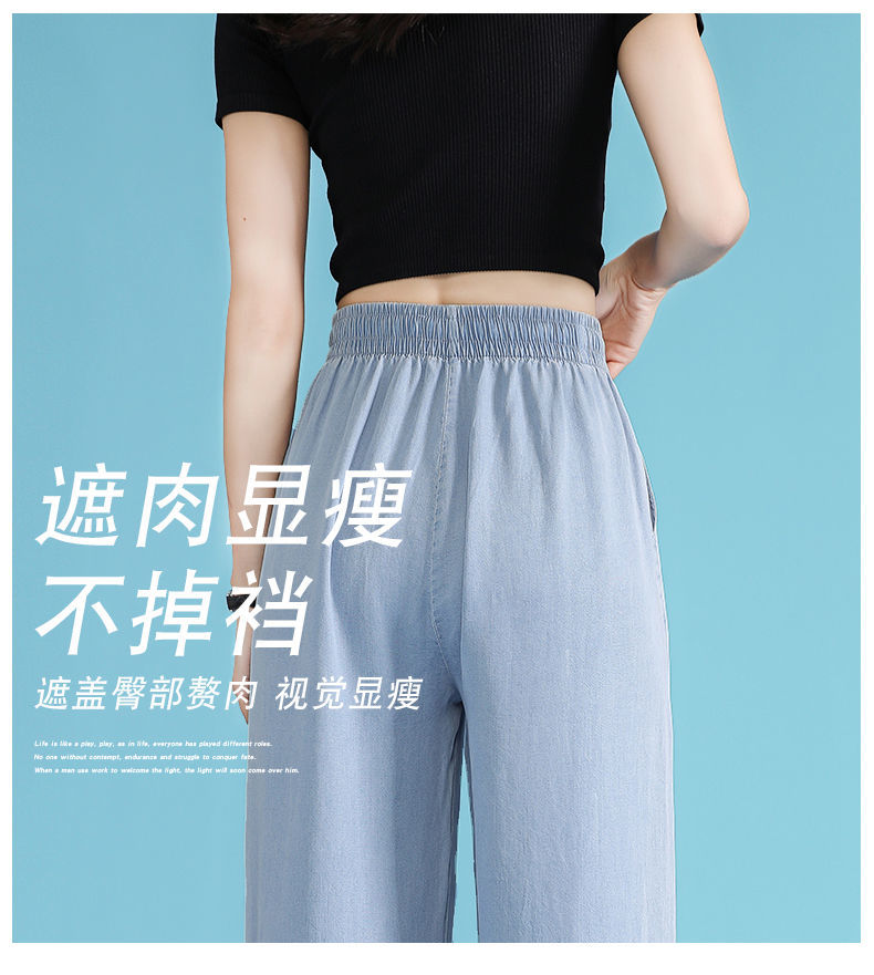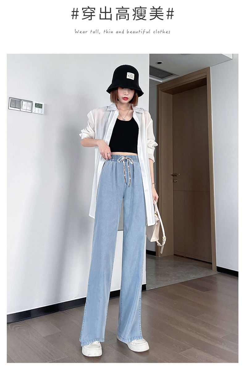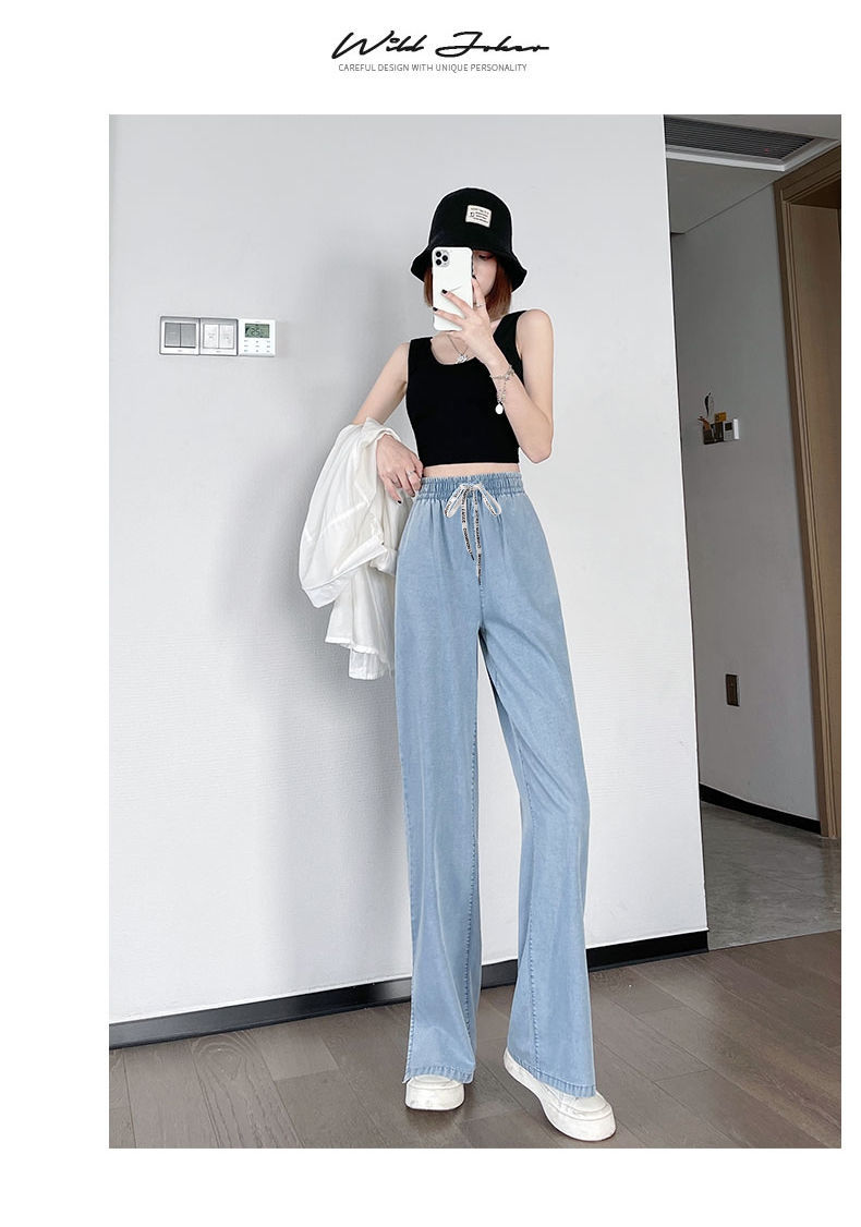 黛唯梵超薄冰丝牛仔裤薄款新款开叉阔腿裤女高腰垂感宽松显瘦休闲裤子