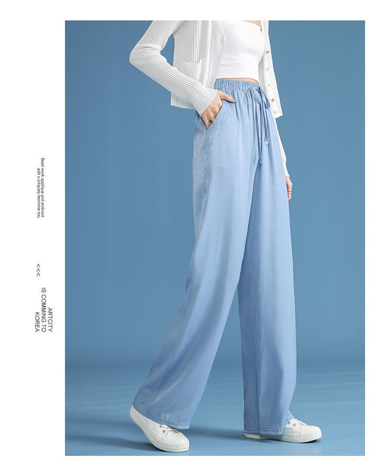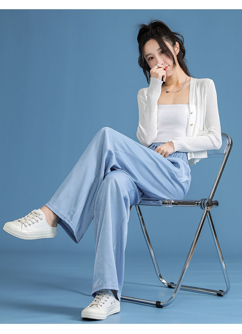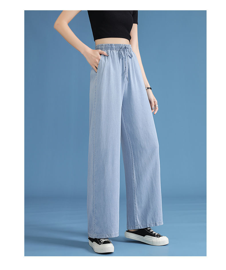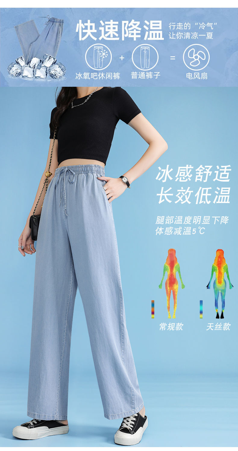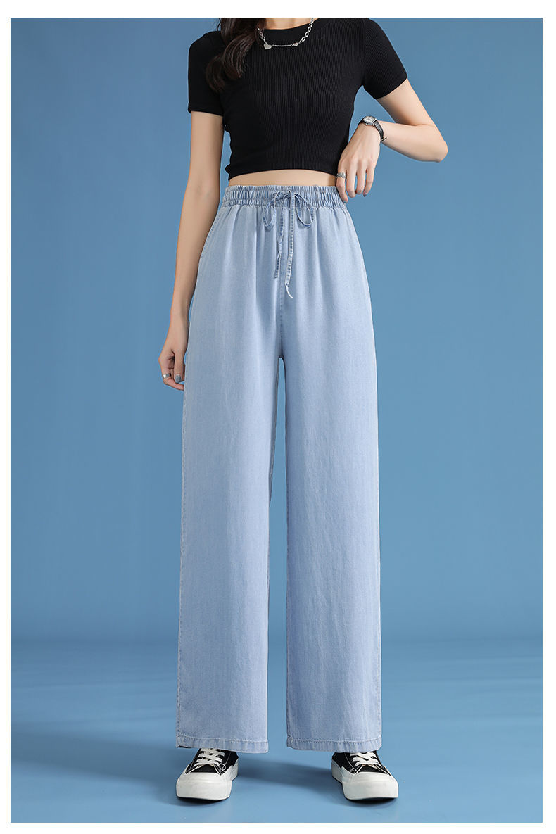 黛唯梵超薄冰丝牛仔裤薄款新款开叉阔腿裤女高腰垂感宽松显瘦休闲裤子