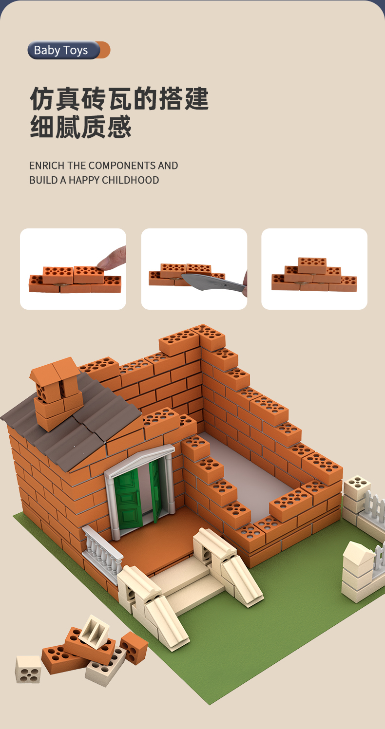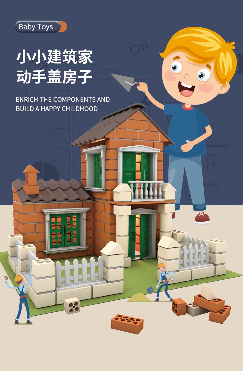 心选丨小小泥瓦匠diy手工造盖房子建筑师砌墙砖块水泥小屋男孩玩具儿童节礼物