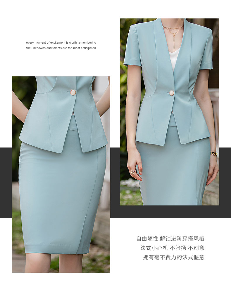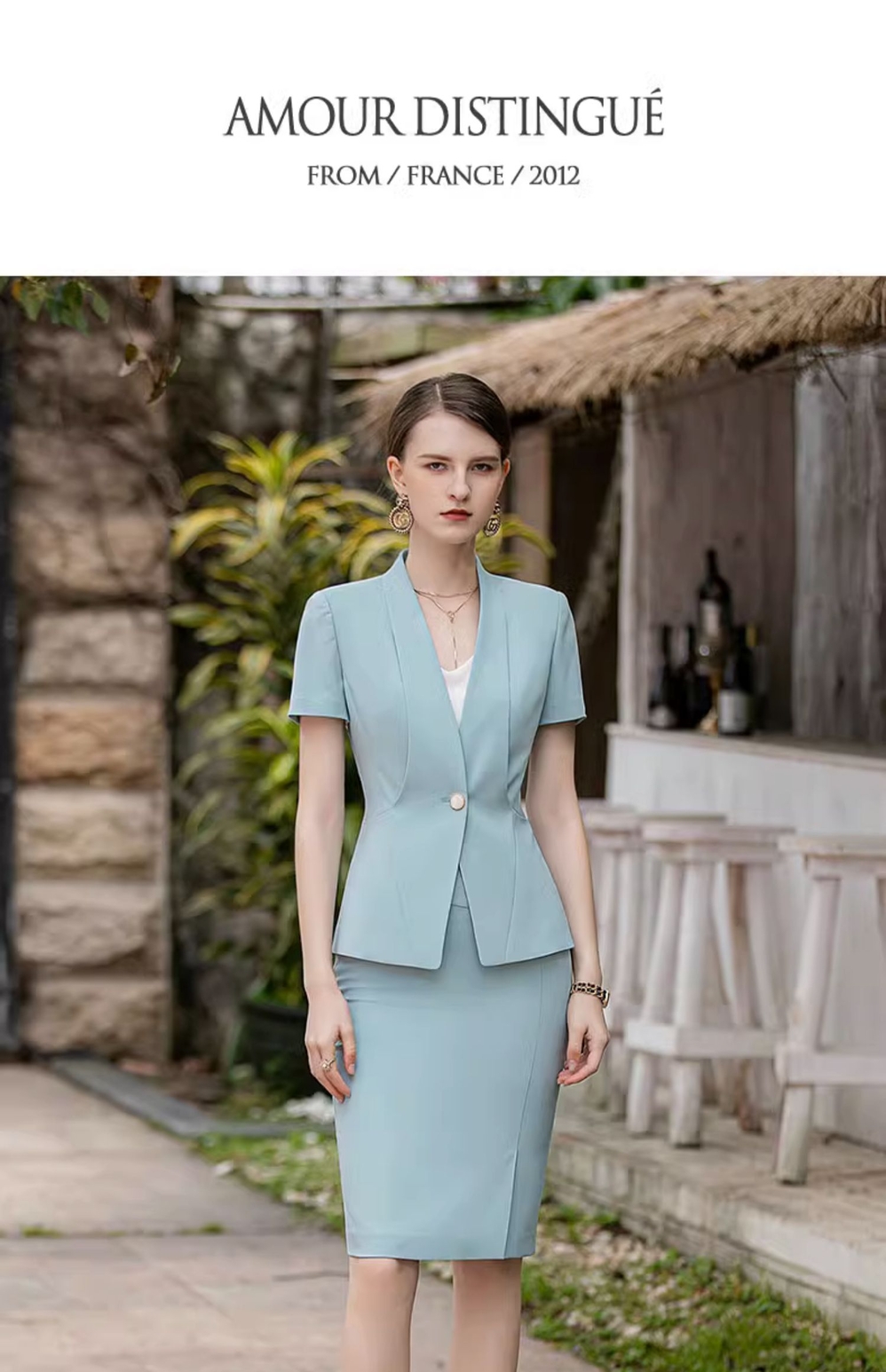 IWY/蓝色西装套裙女气质时尚美容院接待工作服时尚珠宝前台正装CS1822