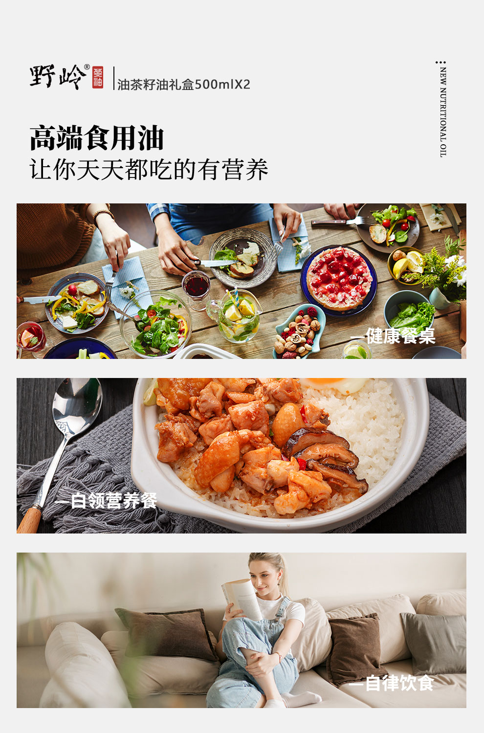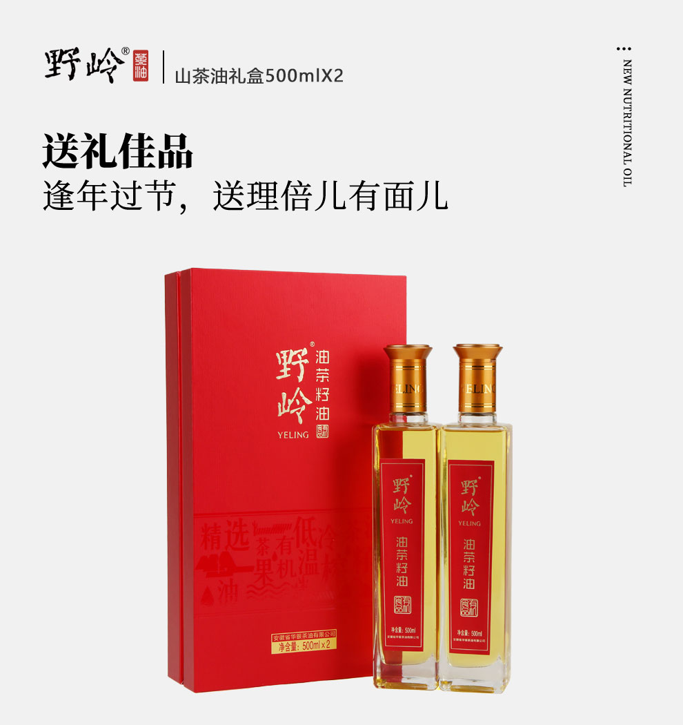野岭冷榨油茶籽礼盒500ML*2瓶(山茶油,有机认证,冷榨)