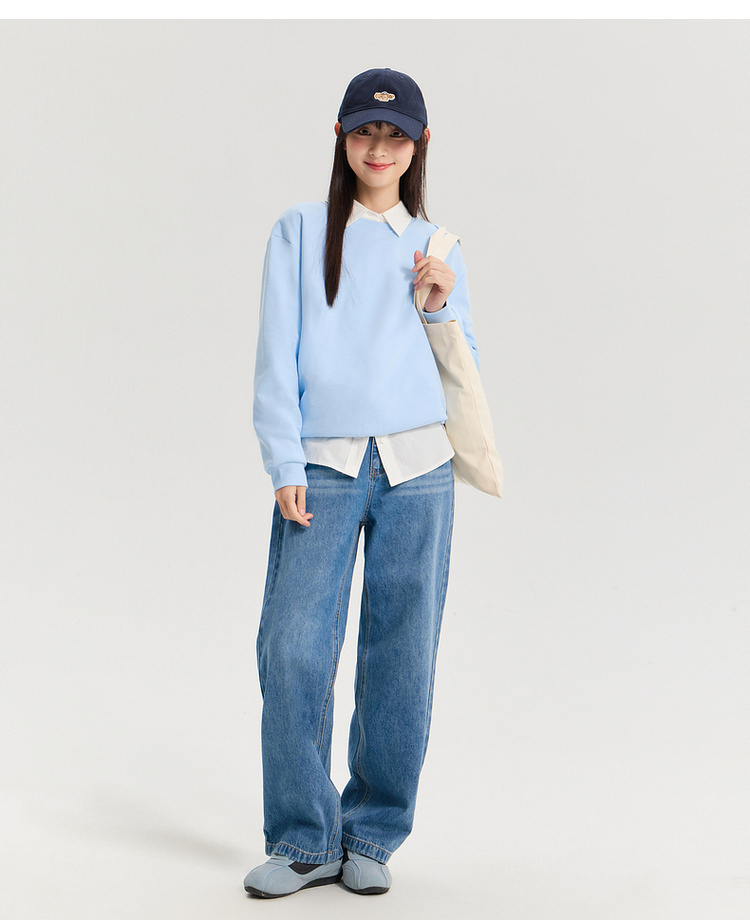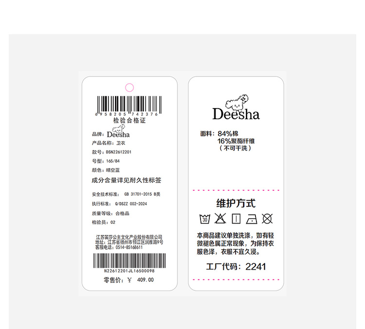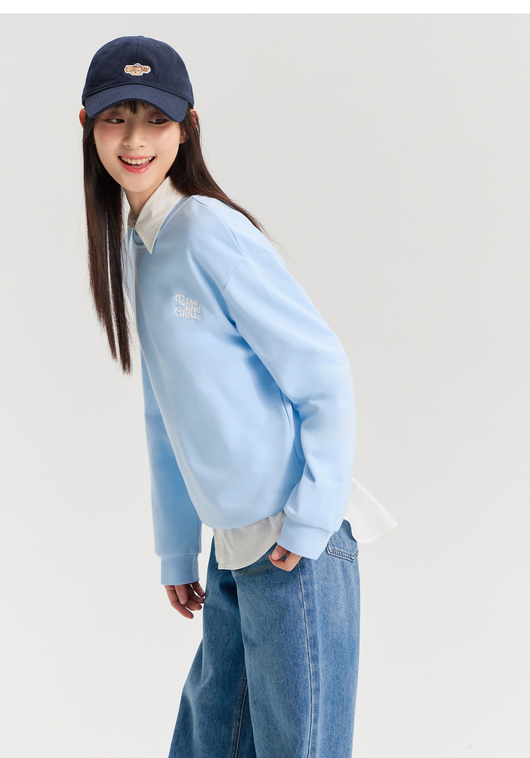 笛莎Deesha青少年女童卫衣2026春季女童圆领前后双面穿卫衣
