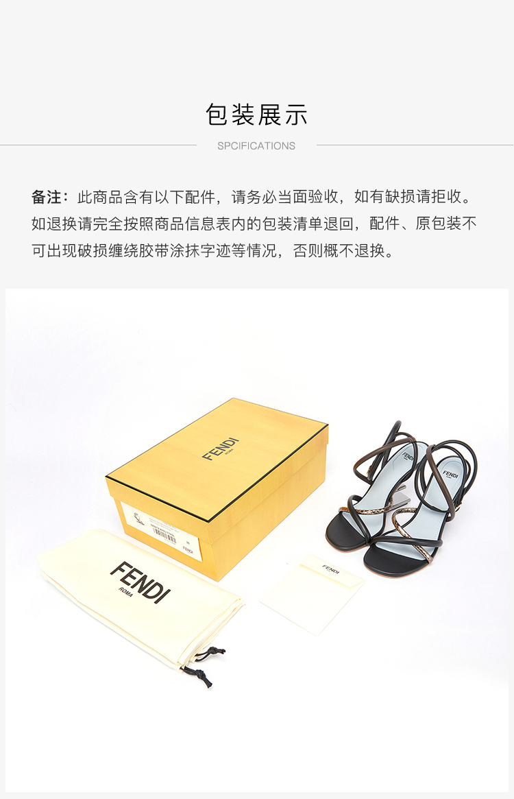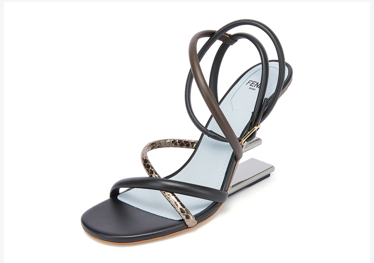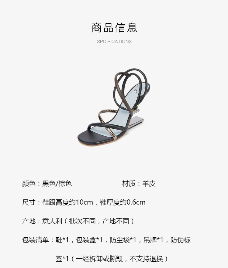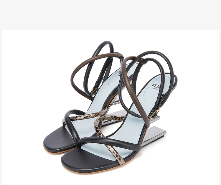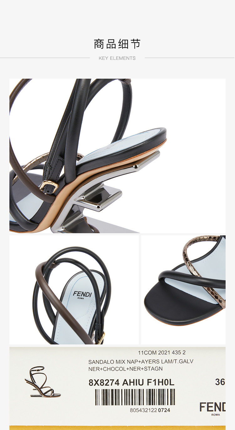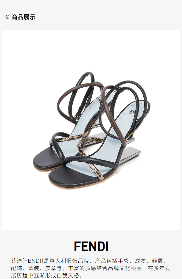 FENDI 芬迪 女士Fendi First系列黑色/棕色羊皮高跟凉鞋 8X8274 AHIU