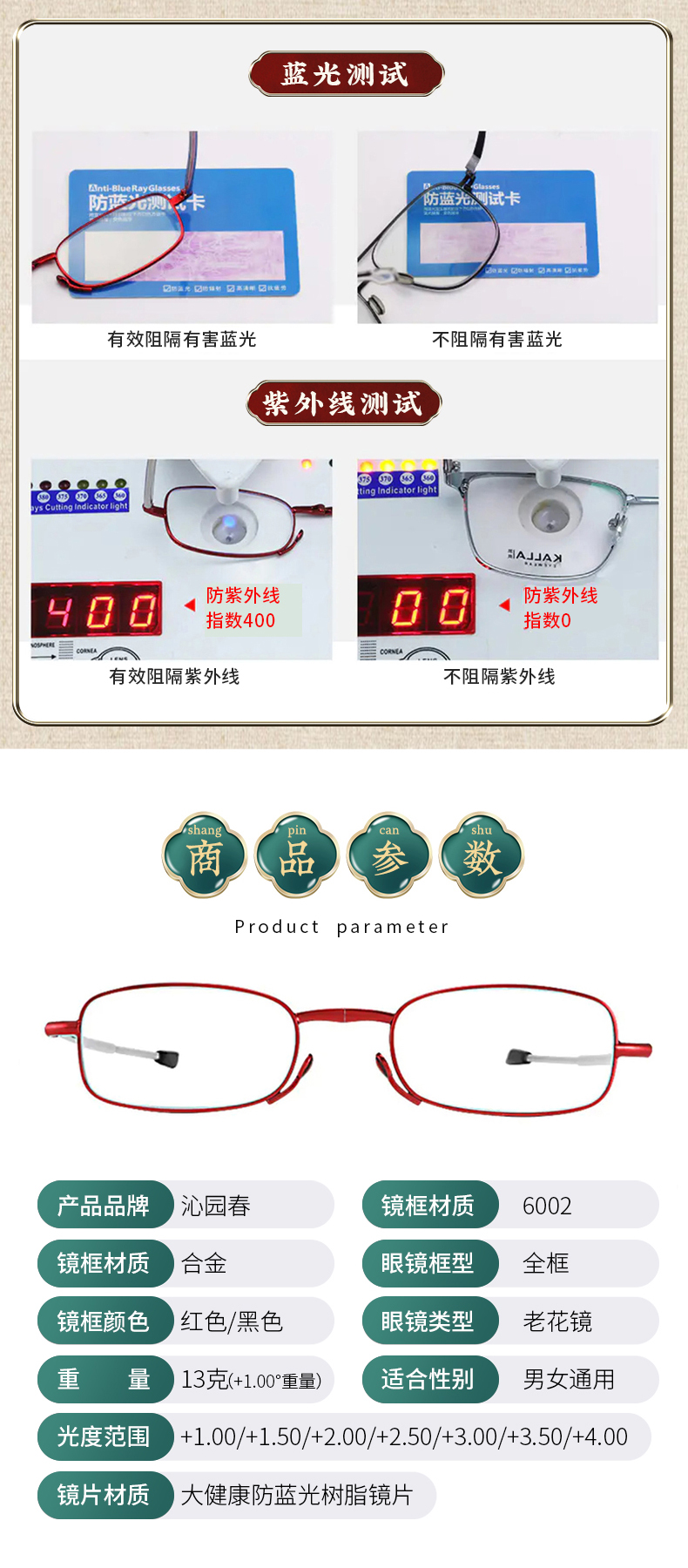 沁园春老花镜 防蓝光防辐射 折叠伸缩 树脂镜片 小巧便捷 时尚舒适 随身携带 男女通用