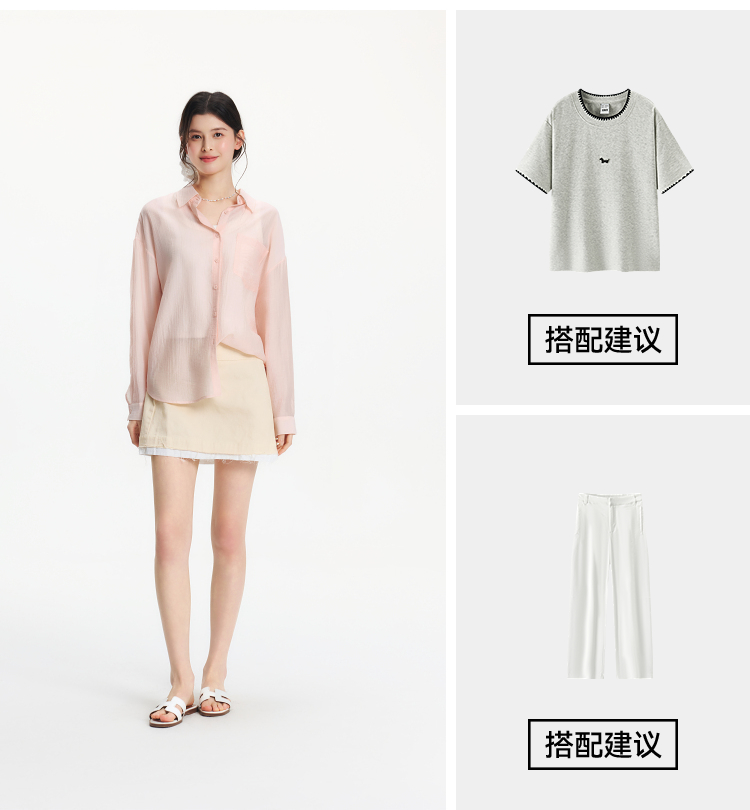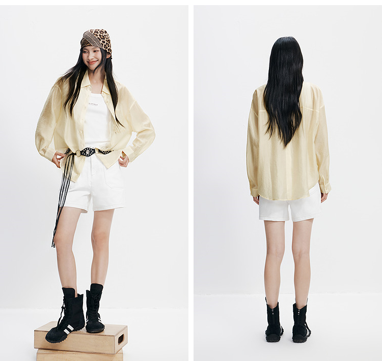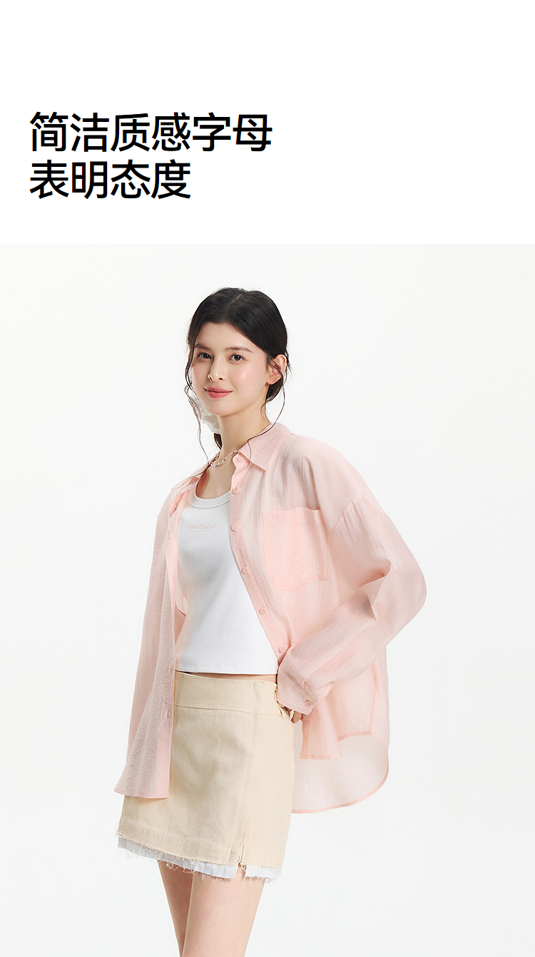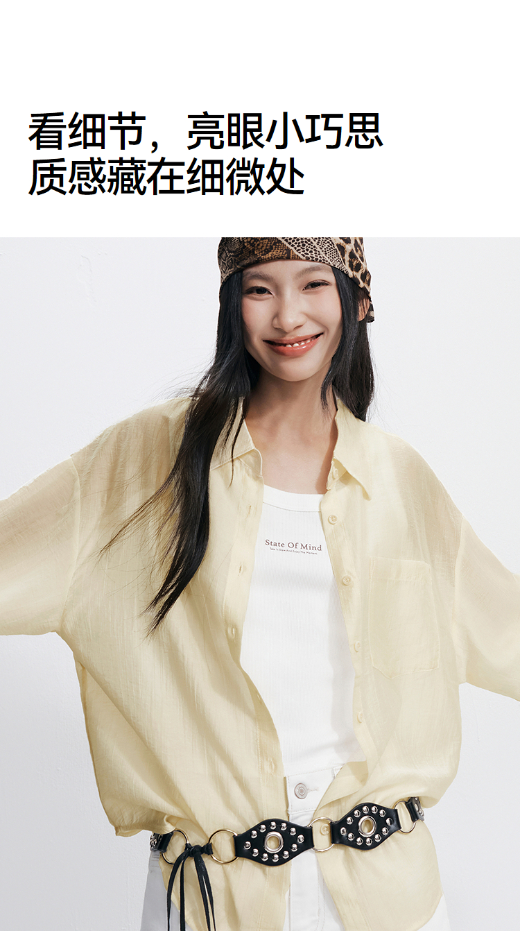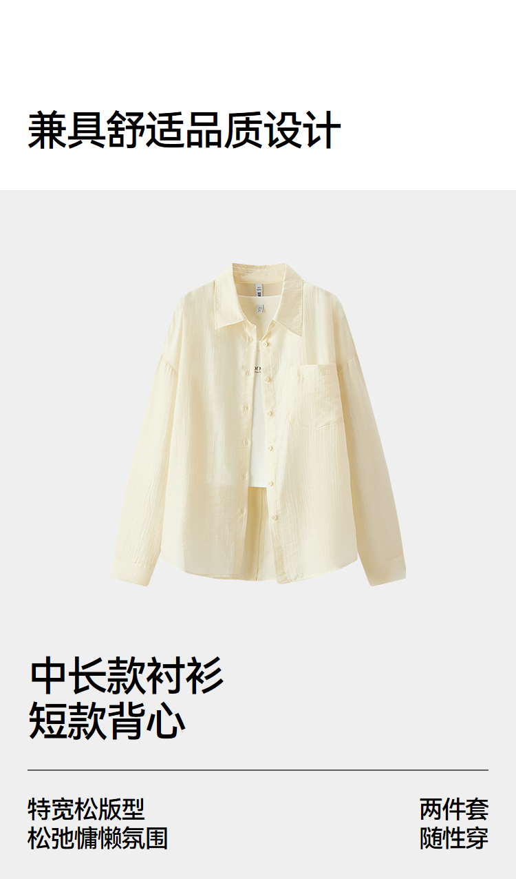 森马长袖衬衫女夏季短背心oversize肌理衬衣松弛感慵懒休闲两件套