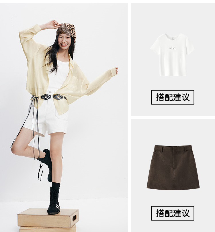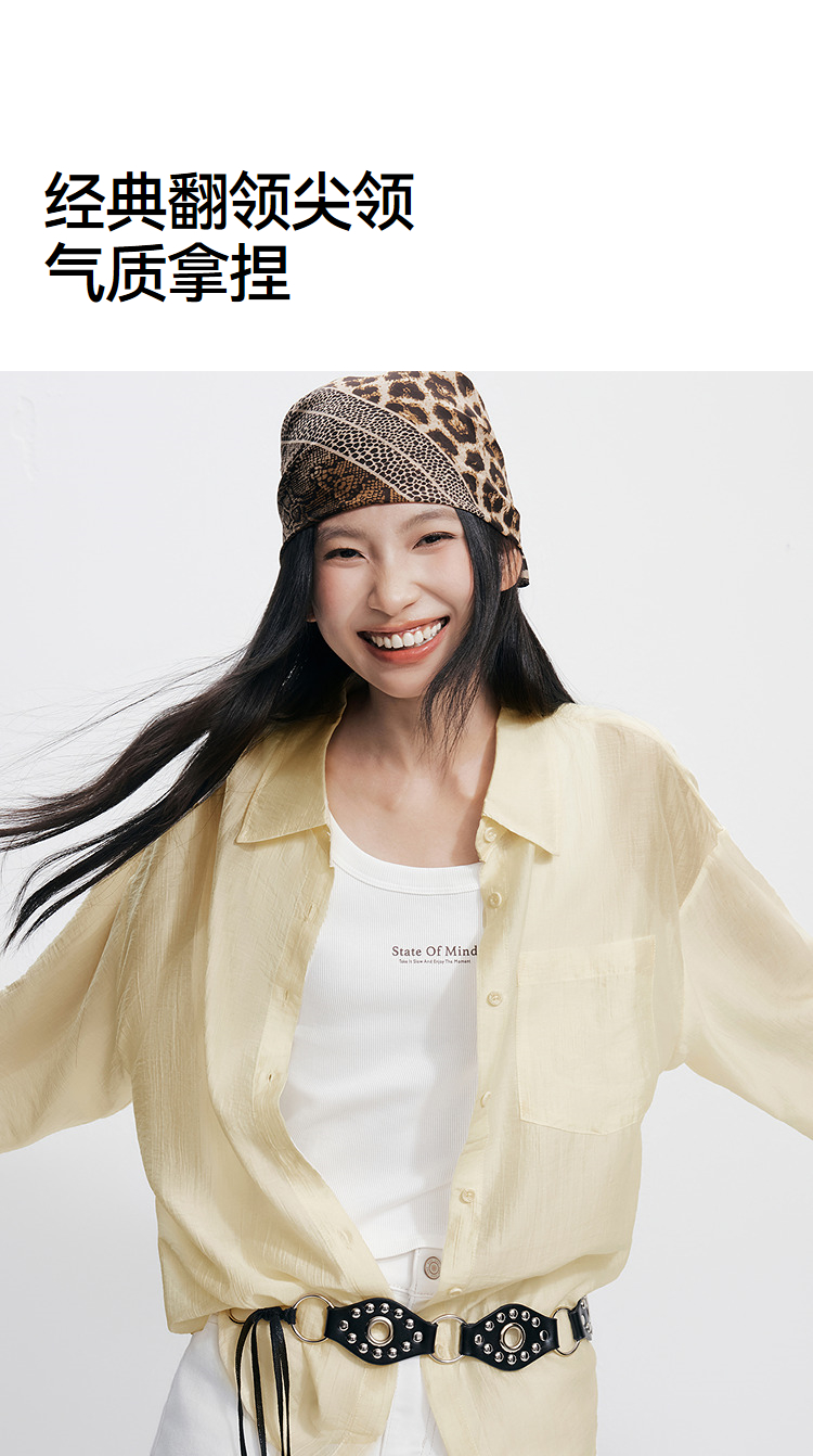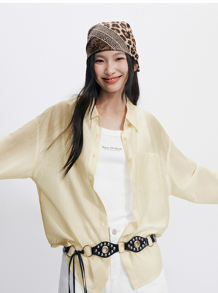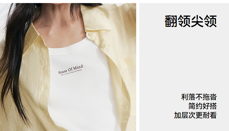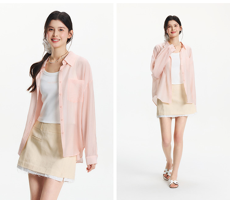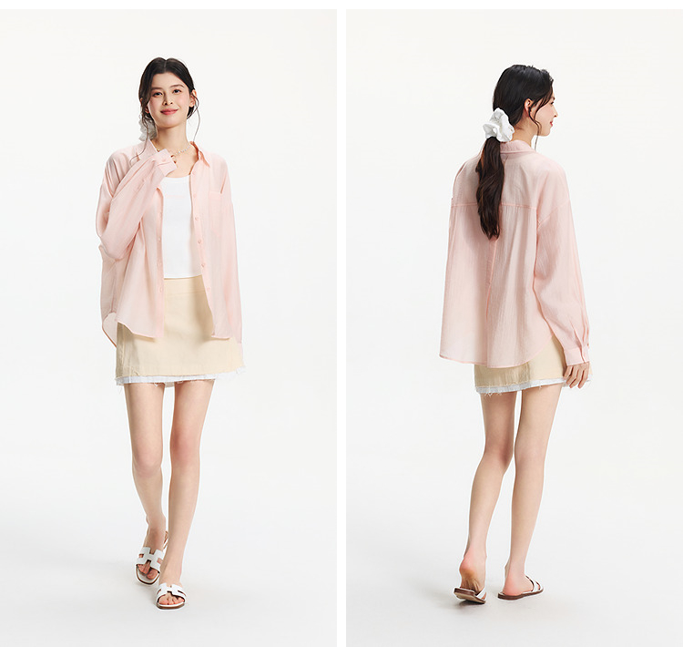 森马长袖衬衫女夏季短背心oversize肌理衬衣松弛感慵懒休闲两件套