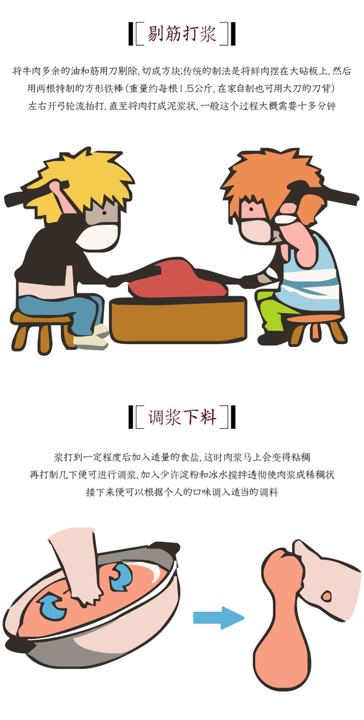 ③冷冻肉不多说大家都不知道,还是有些不大放心。而且冷冻过后的肉,多少会有酸性,是需要人工去酸,做出来的牛肉丸,吃过后口中会有点苦苦和酸酸的味道。
