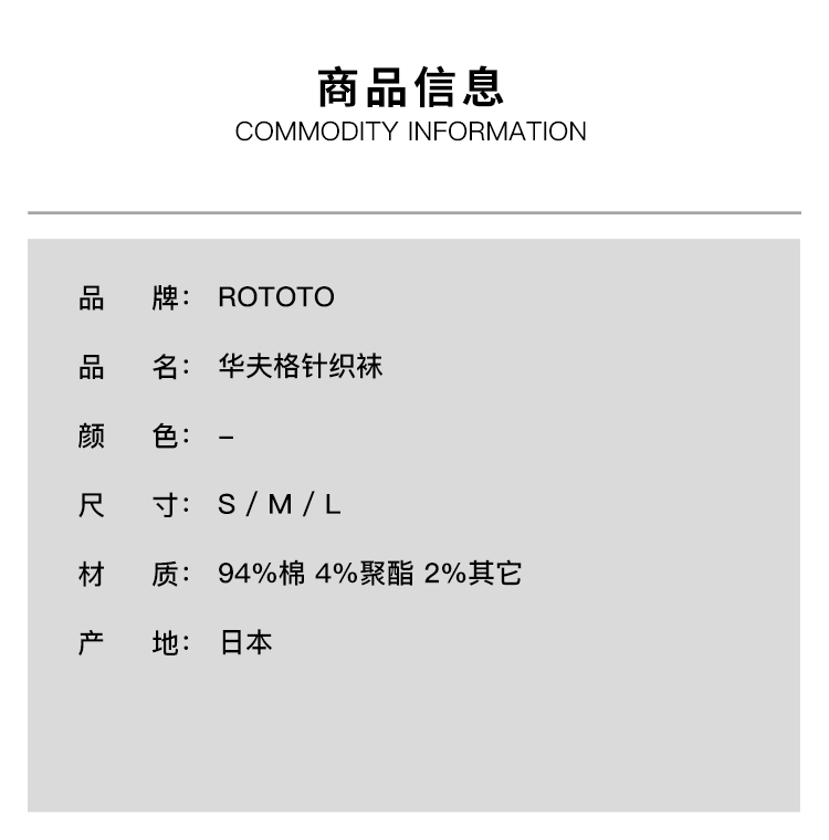 ROTOTO 日本制混合面料华夫格针织袜 中筒袜