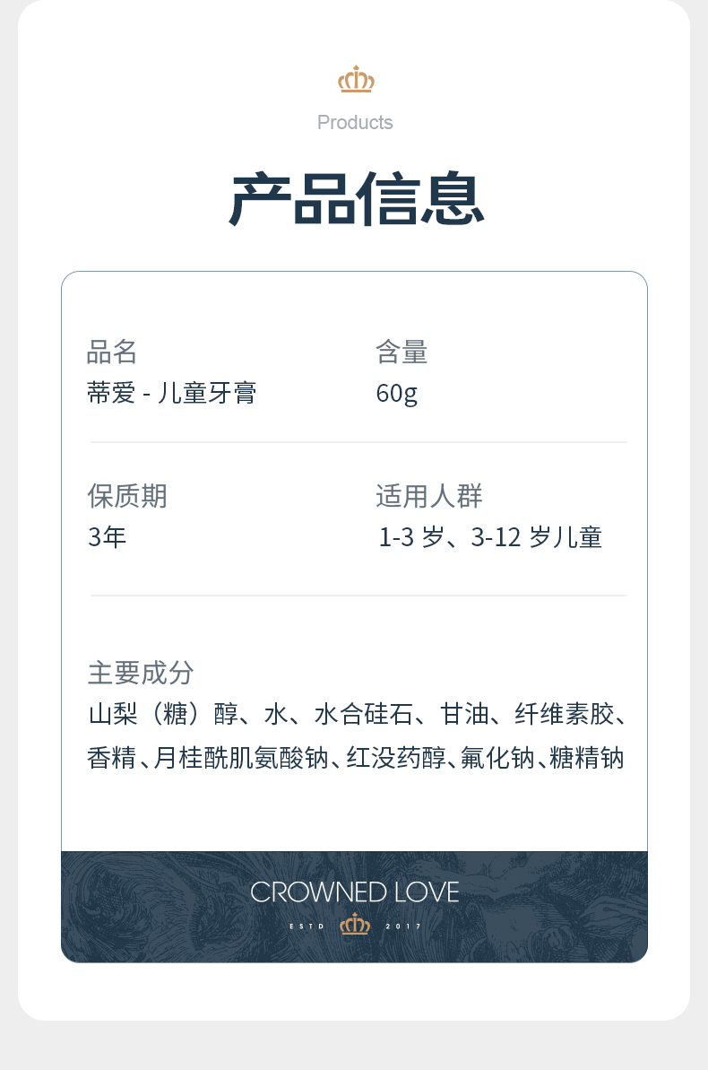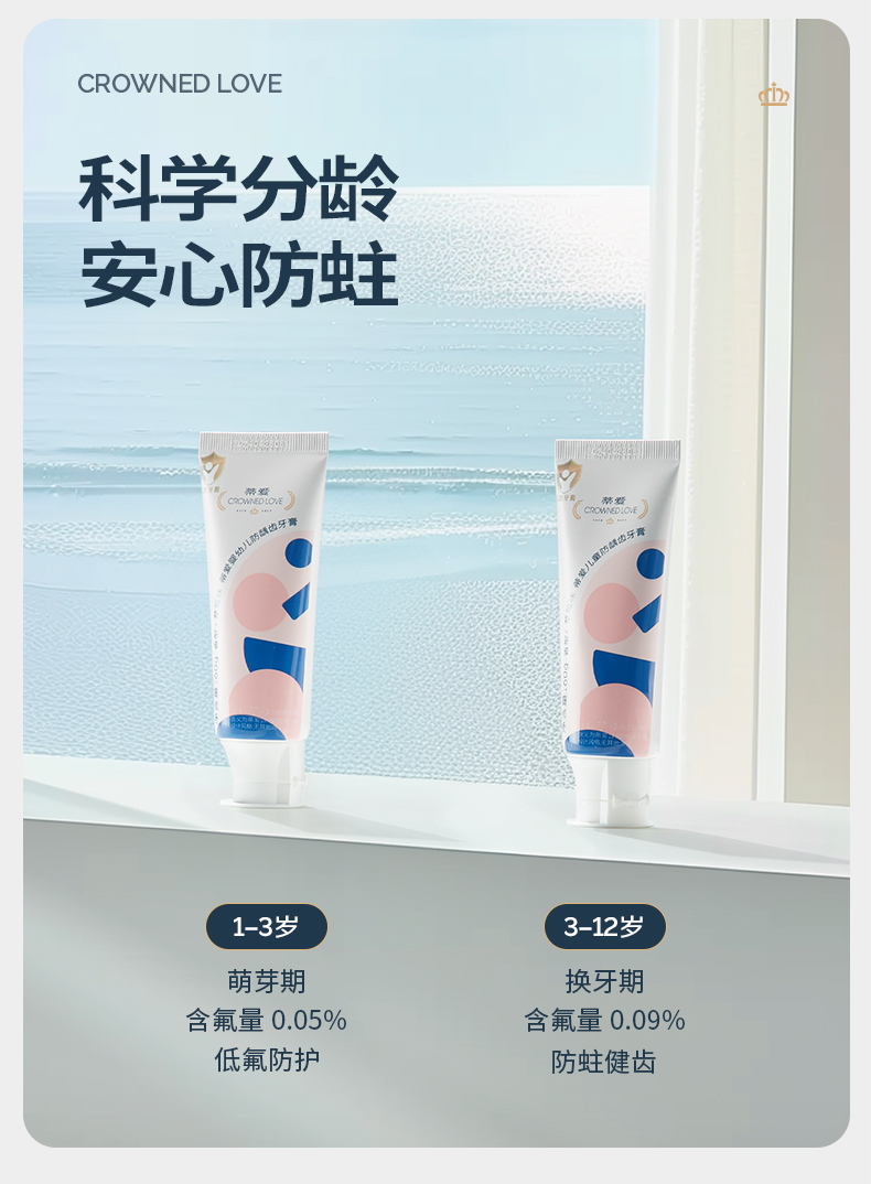 蒂爱儿童宝宝牙膏1-3-6岁奥拉氟含氟微氟防蛀固齿婴幼儿防龋齿