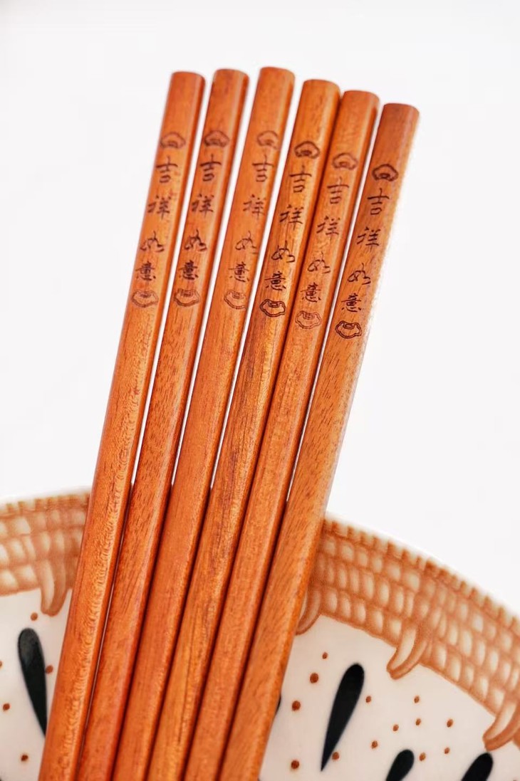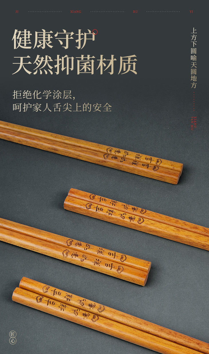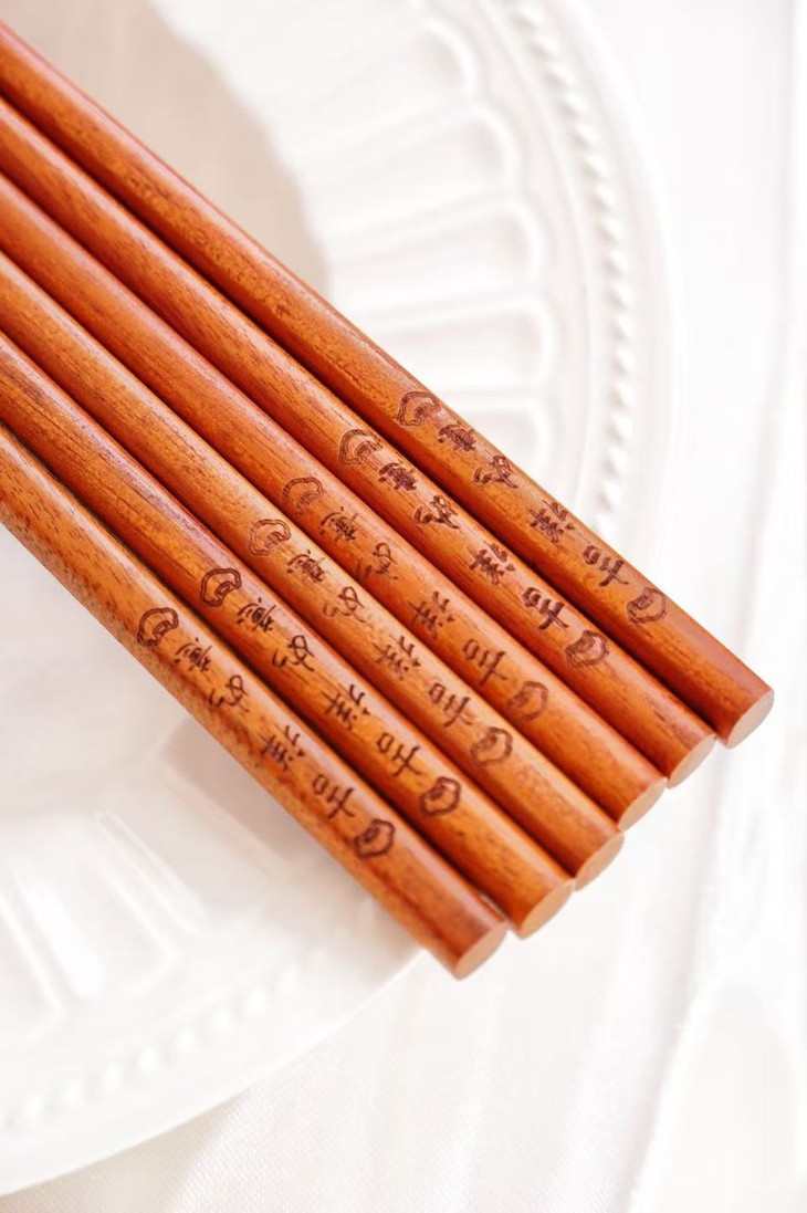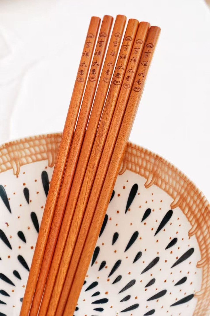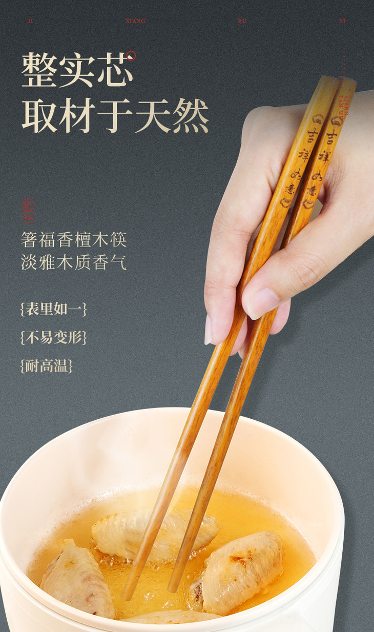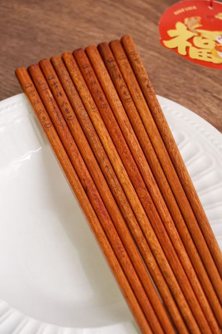 每天入口的筷子,别再凑合 香檀木吉祥如意筷,0胶水、0漂白、0合成 无漆无蜡、整木打磨,只留原木 精美刻字花纹,把中式美学狠狠拿捏住 无论是送长辈、还是送朋友都非常合适 直接把㊗福:“快快乐乐,吉祥如意”送上