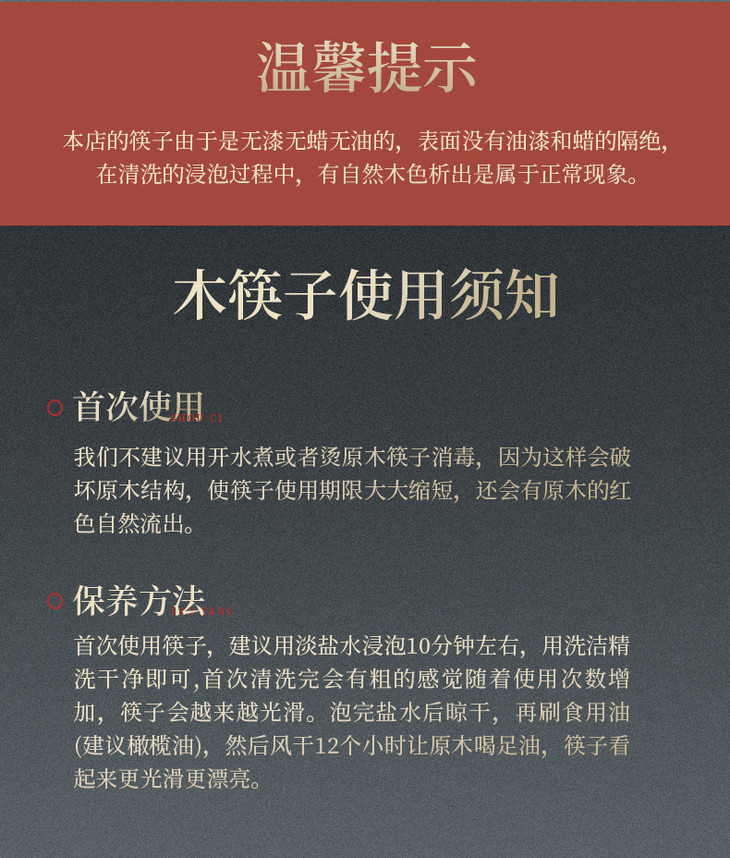 ✅由实木整木取材制作,不是所谓的拼接木料 表面无漆无蜡无染色,无化学用料无毛刺 看似简单却隐藏着众多工序 经物理切削、高温消毒及手工打磨、抛光等多道程序 天然的一体的木纹 保证筷子光滑无刺、握感舒适,夹菜不易滑