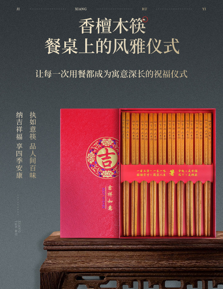 wind香檀木筷】给予最好的祝福 香檀木+吉祥如意 每一双筷子都带有吉祥如意字~ 自用彰显品味,送礼超有面儿