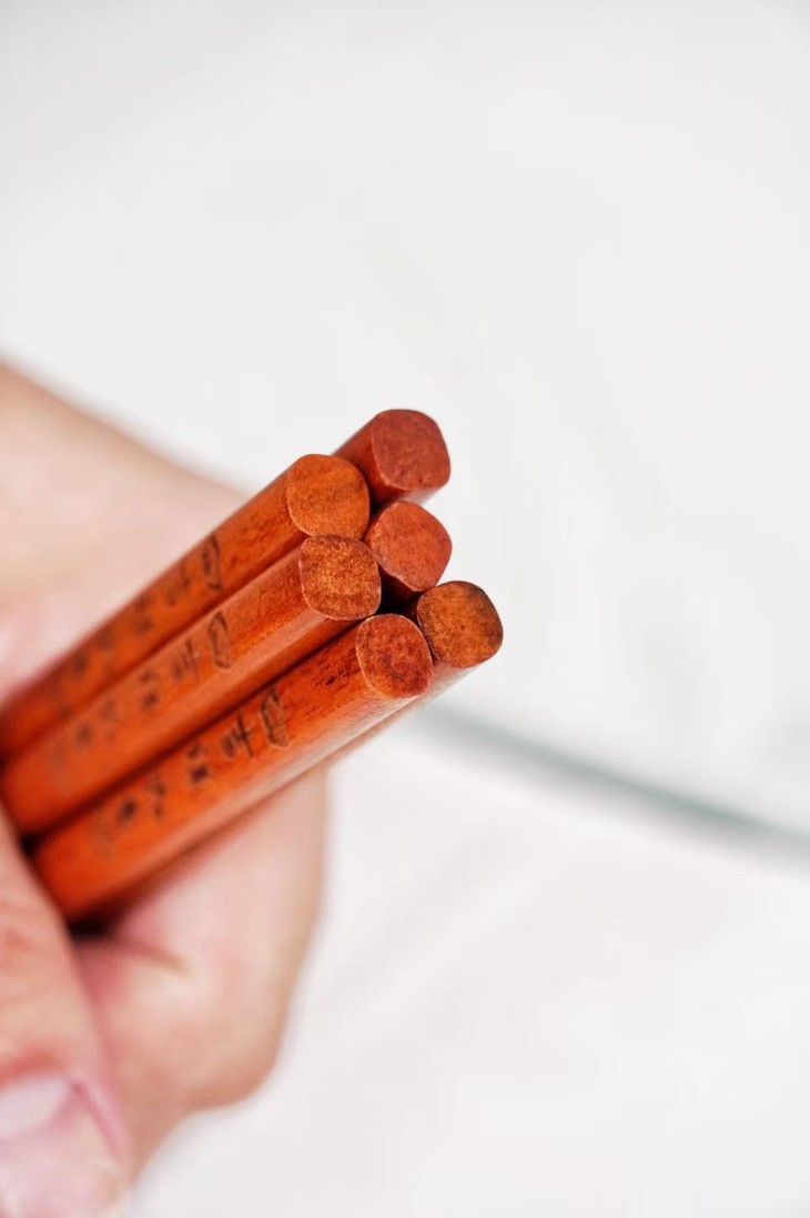 香檀木气味清淡,是淡淡的木质香 不同于市场上其它气味很重的木质筷子 对于气味敏感的人来说很友好 真正使用、送食入口的时候不会影响到食物本味 更没有其它化学异味