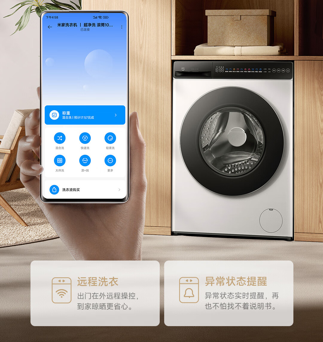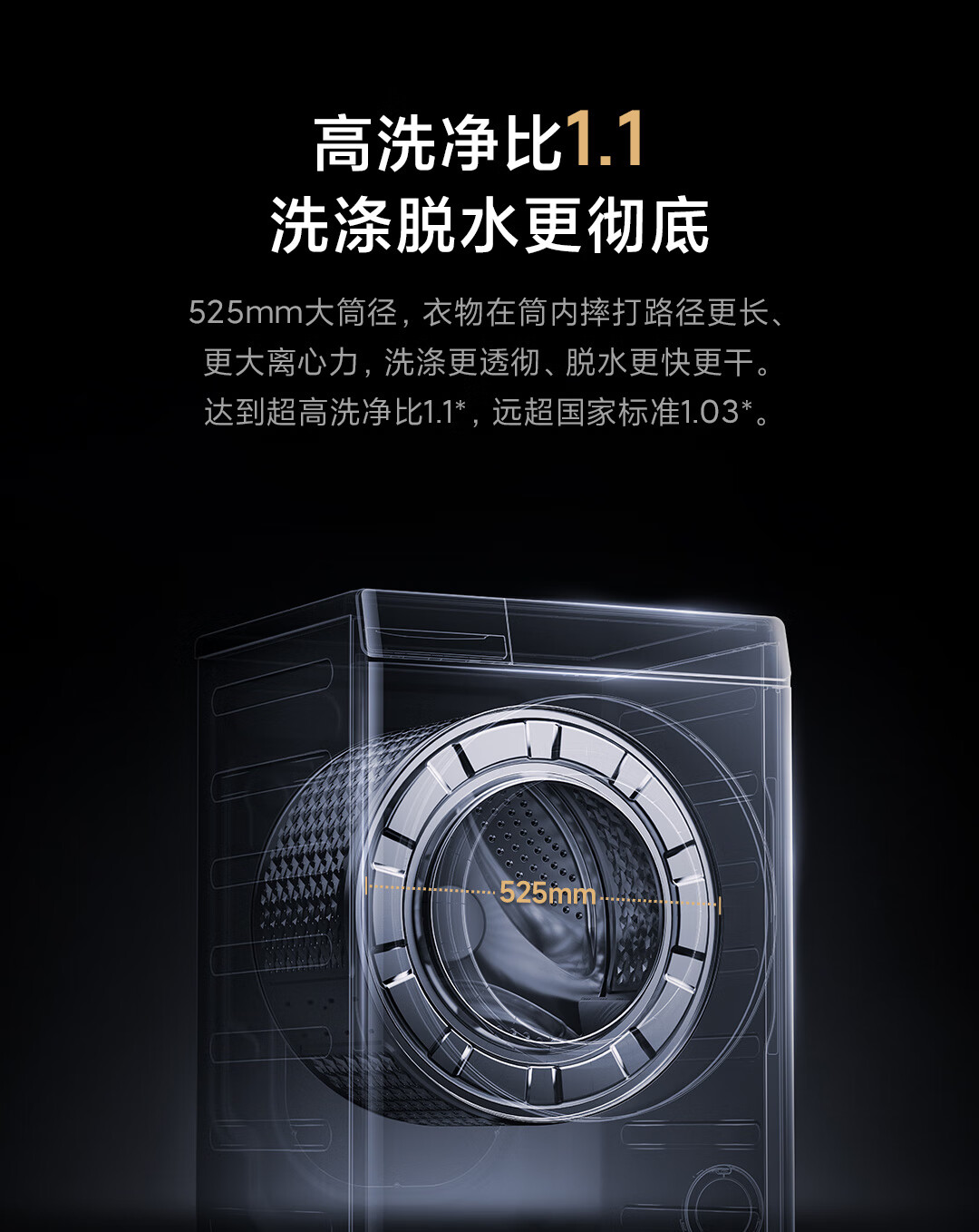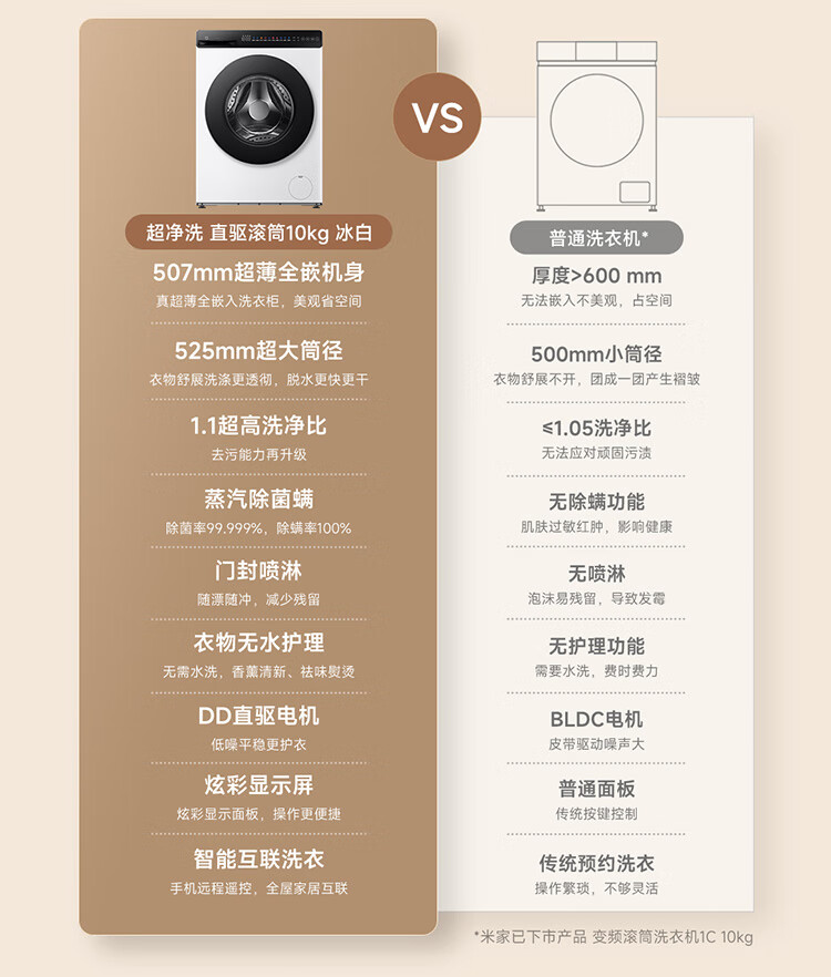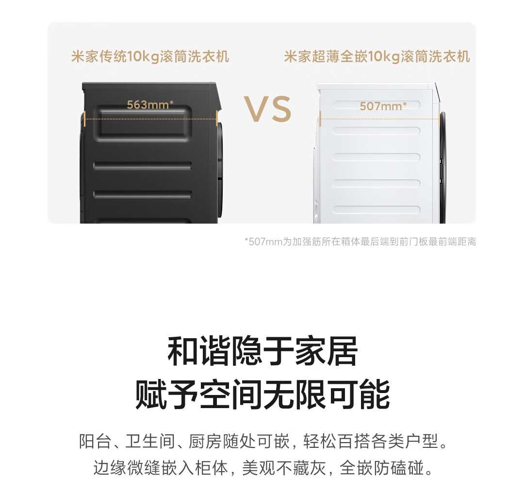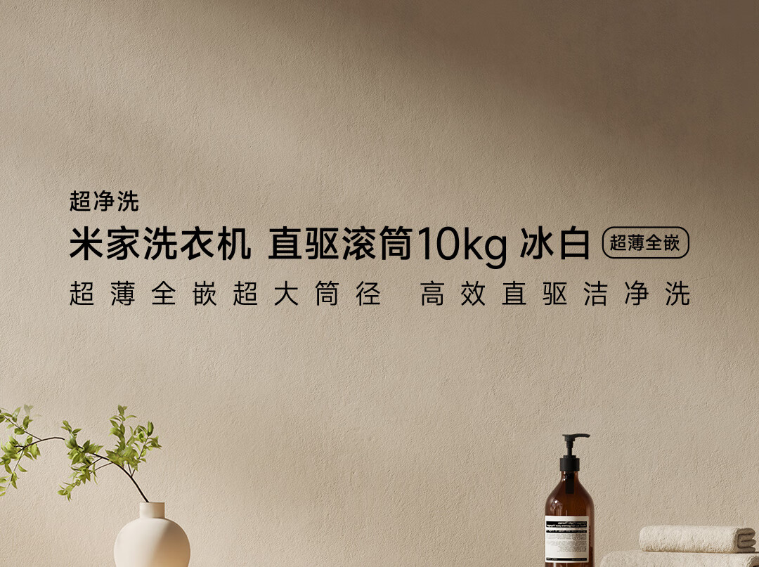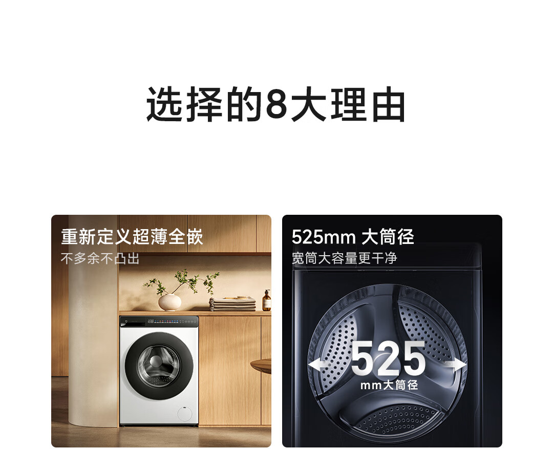 米家小米10公斤滚筒洗衣机全自动超薄全嵌机身525mm超大筒径1.1高洗净比直驱电机深层除螨