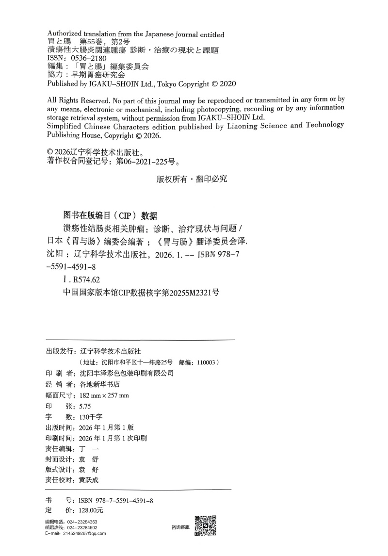 溃疡性结肠炎相关肿瘤——诊断、治疗现状与问题 胃与肠 日本《胃与肠》编委会编著 《胃与肠》翻译委员会译 辽宁科学技术出版社