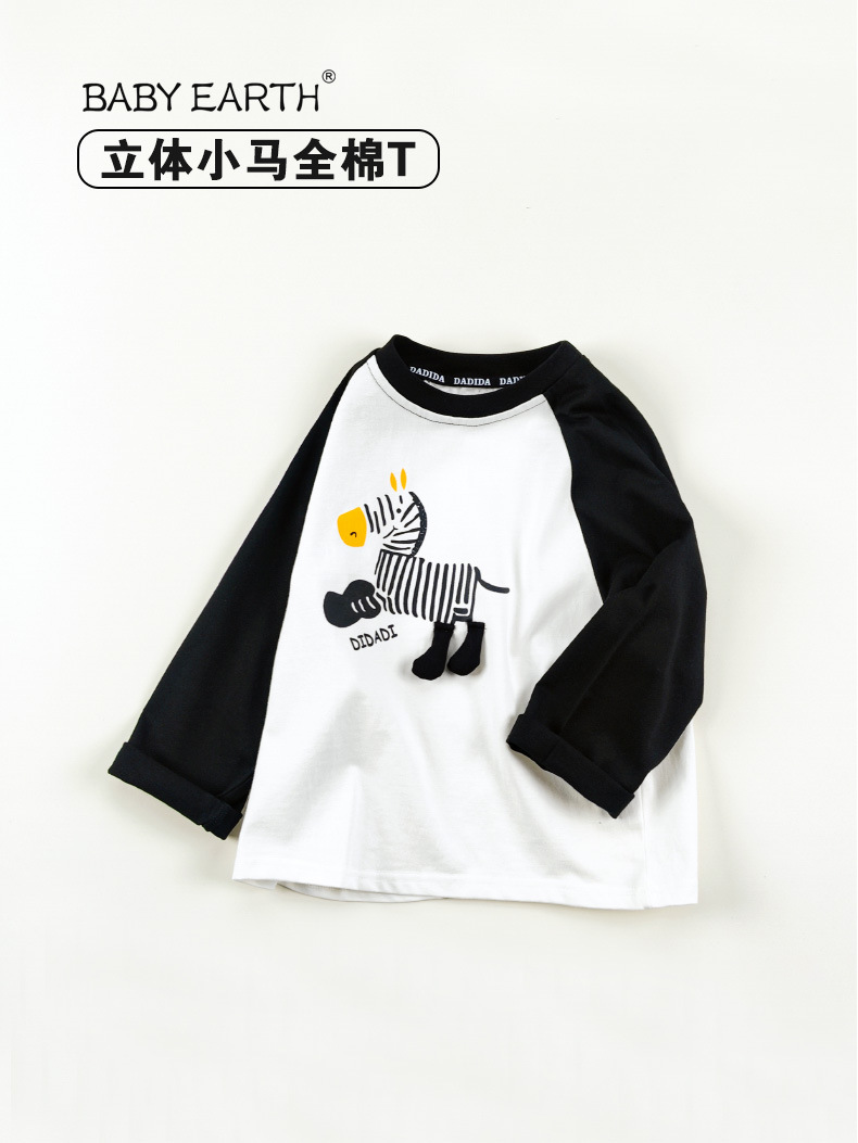 儿童t恤秋季新款男童卡通衣服女童韩版长袖上衣秋装大童全棉体恤a