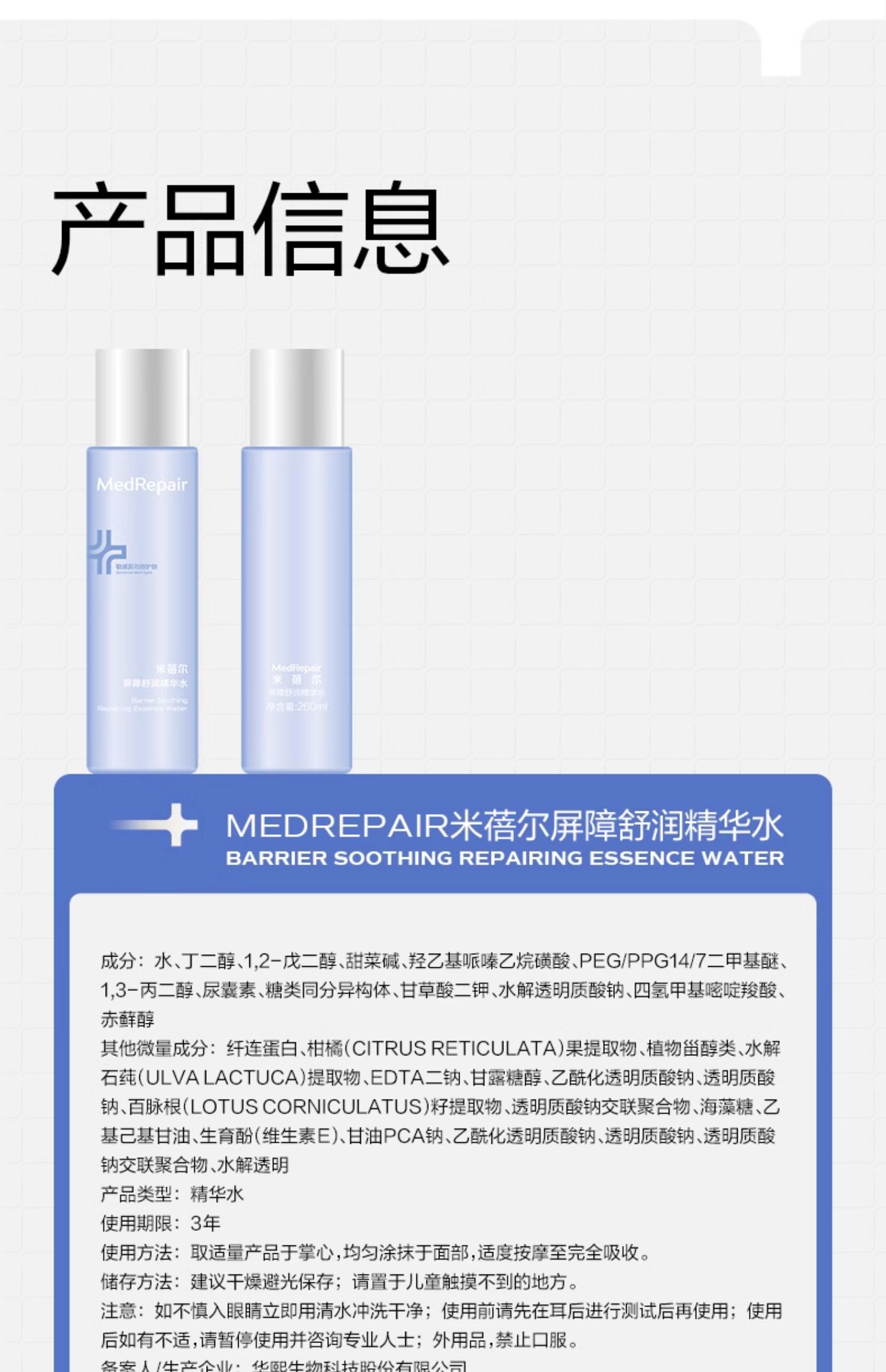 【员工内购】MedRepair米蓓尔屏障舒润精华水[260ml/瓶]大白水补水修护