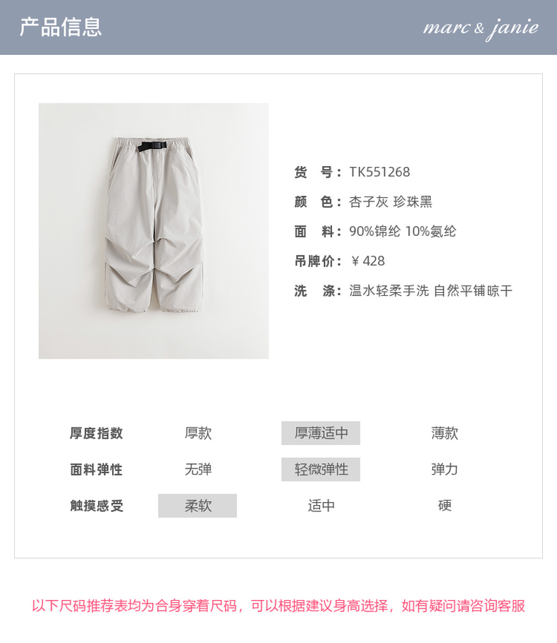 [吸湿速干]马克珍妮男女童轻弹速干伞兵裤儿童裤子秋装新品551268