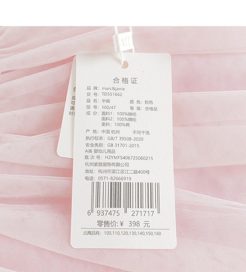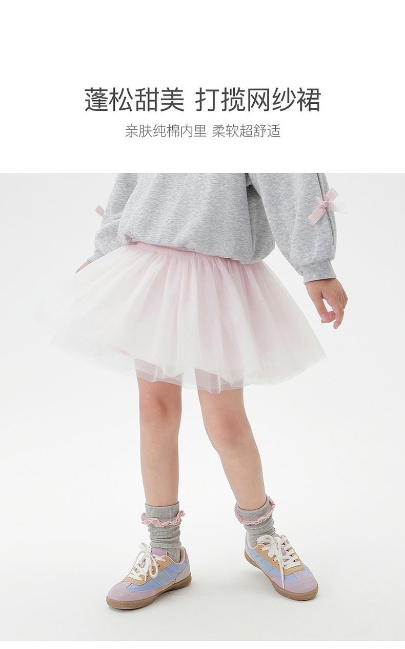 马克珍妮女童甜美蓬松褶皱网纱短裙儿童裙子2025年秋装新款551662