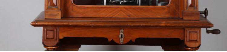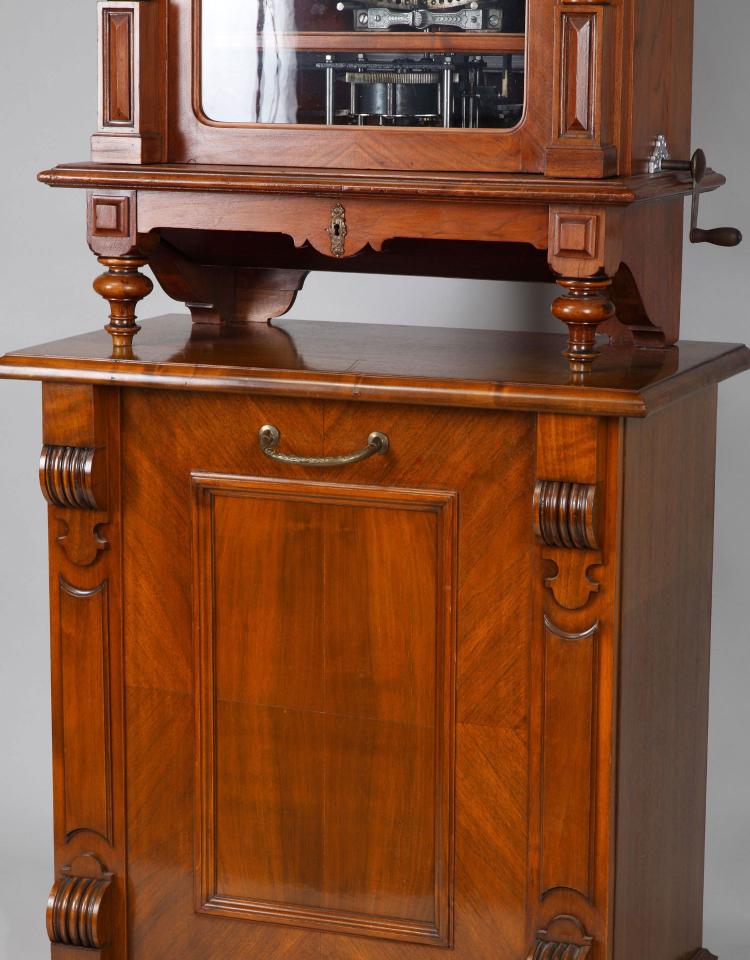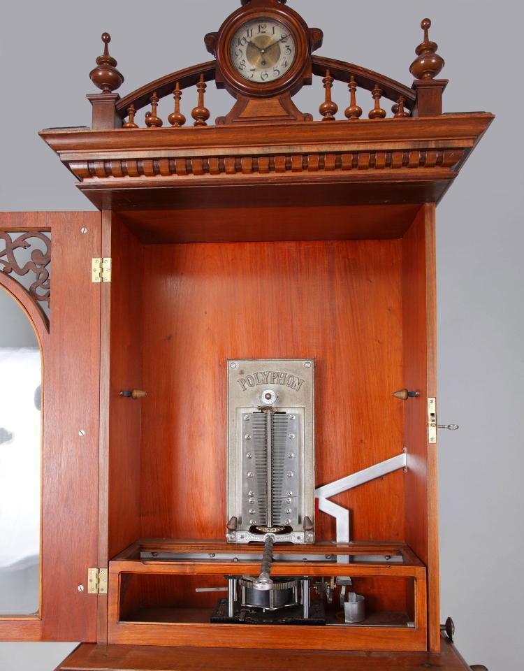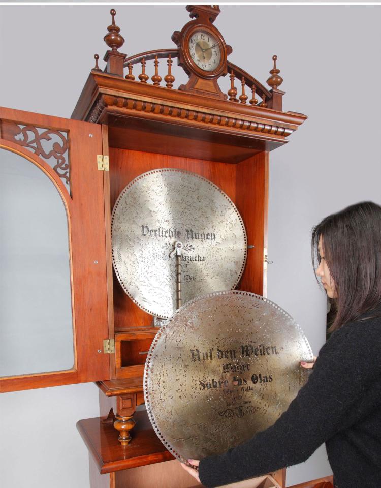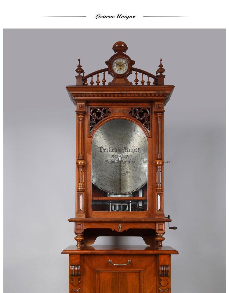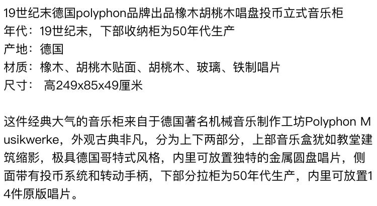 独角鹿西洋古董德国polyphon品牌橡木胡桃木唱盘投币立式音乐柜