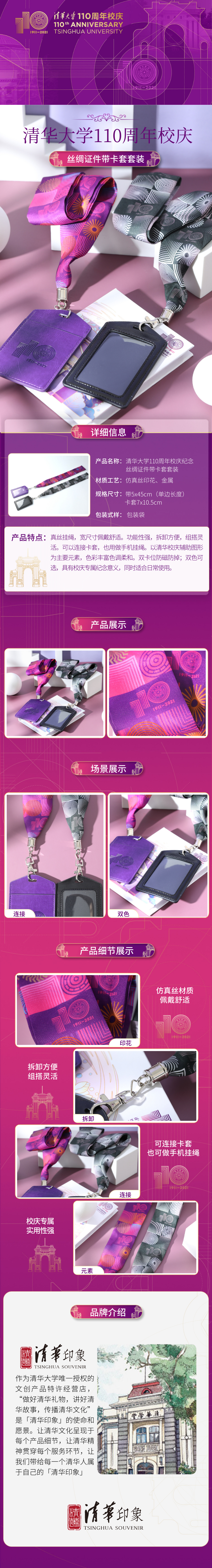 清华大学110周年校庆纪念【丝绸】证件带卡套套装