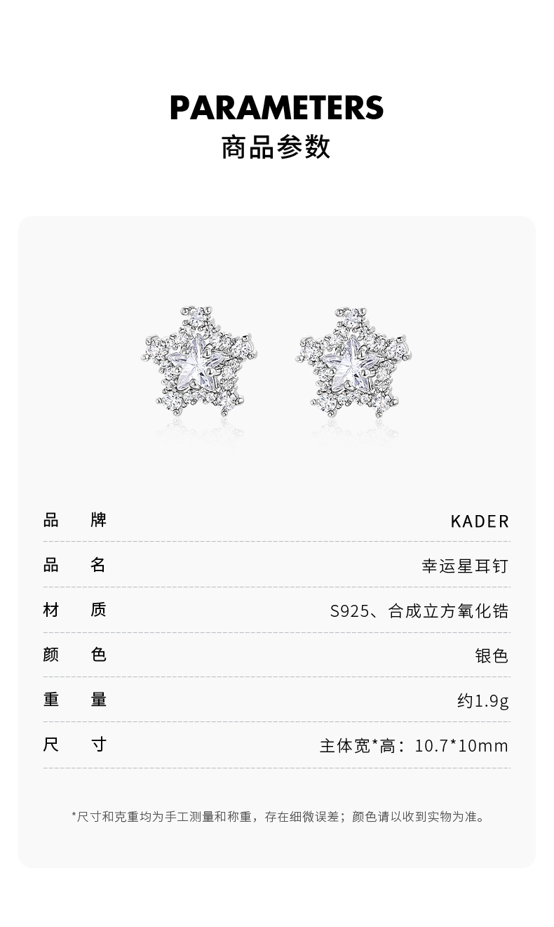 KADER卡蒂罗 幸运星耳钉 耳饰女2023新款爆款小众设计感高级感七夕礼物