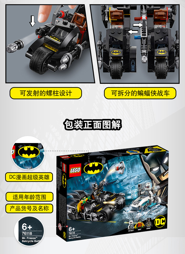 乐高 LEGO 蝙蝠侠大战急冻人 LEGC76118 超级英雄SuperHeroes 适用年龄3Y-6Y 拼插积木益智玩具