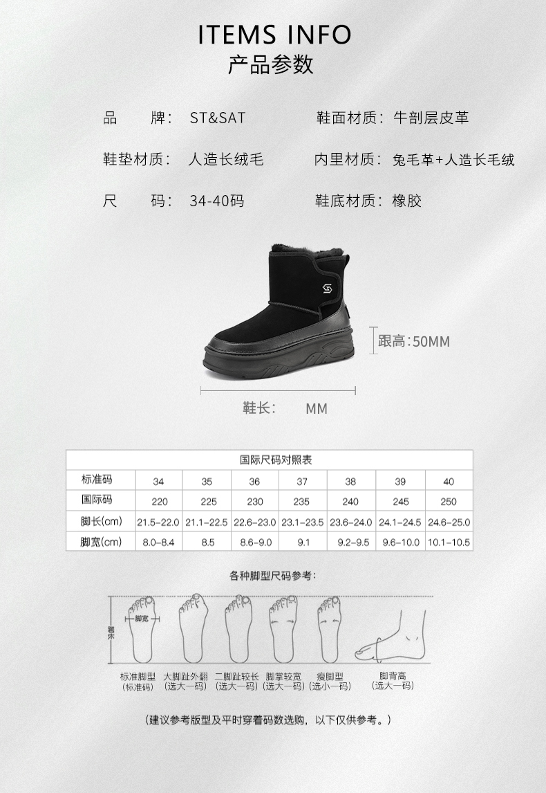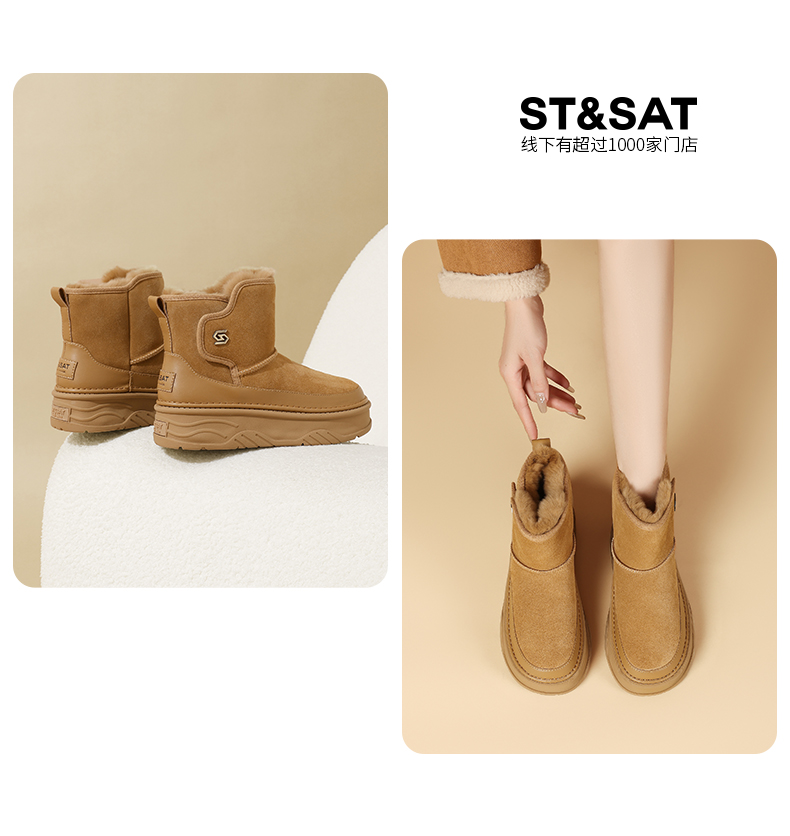 星期六经典百搭增高厚底雪地靴SSC411A05P