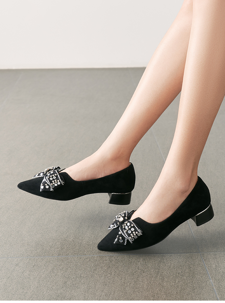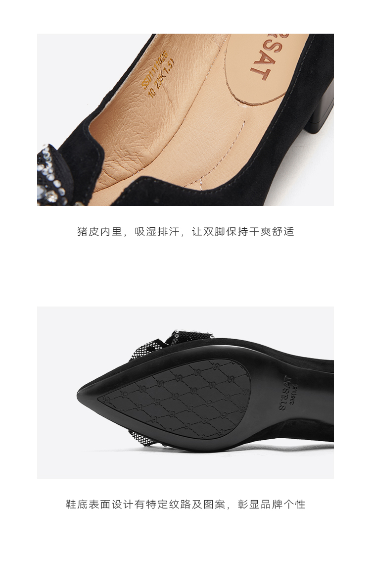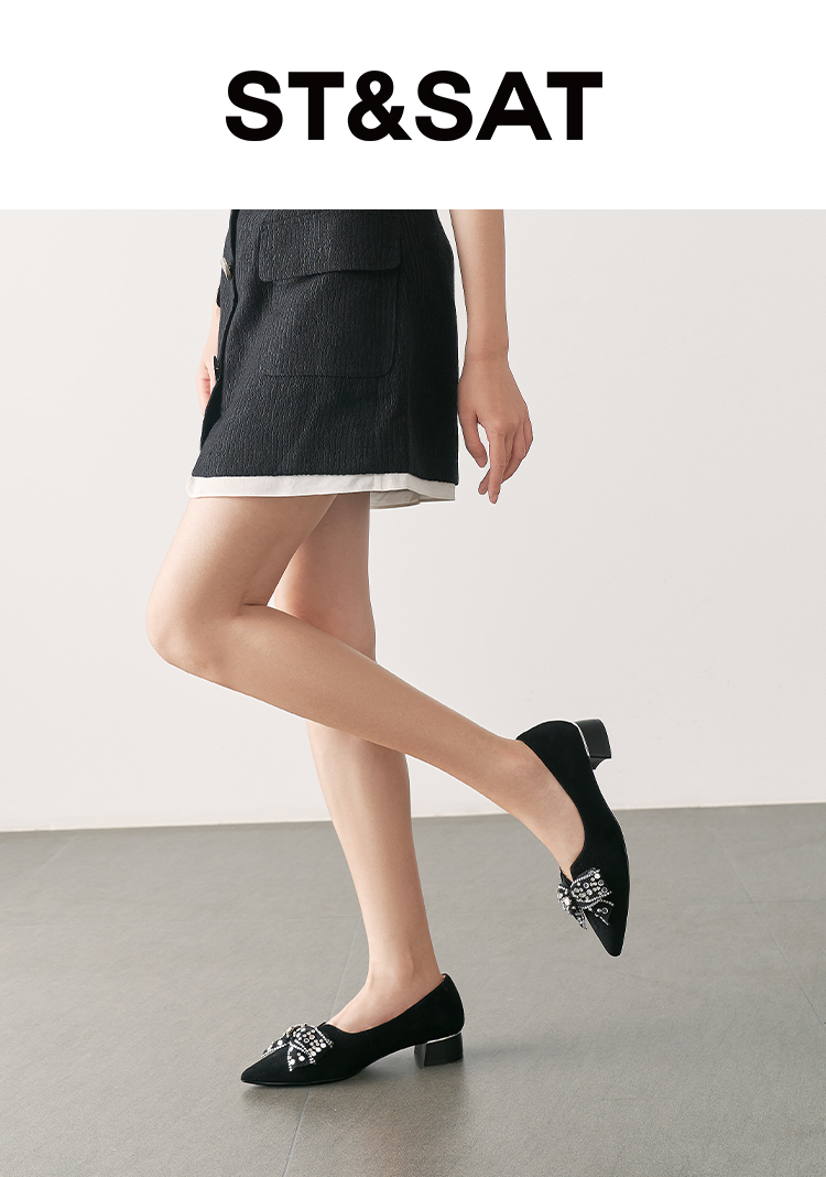 星期六气质尖头蝴蝶结通勤百搭低跟单鞋SSD1111026