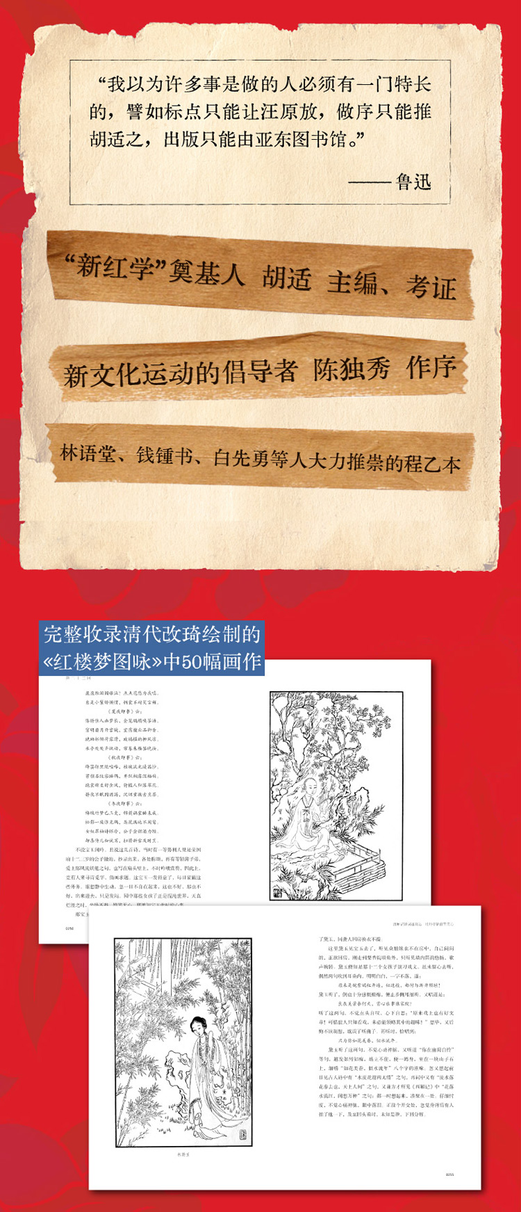 完整收录清代改琦绘制的《红楼梦图咏》中50幅画作 内附“新红学”开山之作《红楼梦考证》 清代嘉庆二十二年《痴人说梦》前所未见地呈现了大观园全景 精心整理《红楼梦》四大家族人物关系表(画像版)