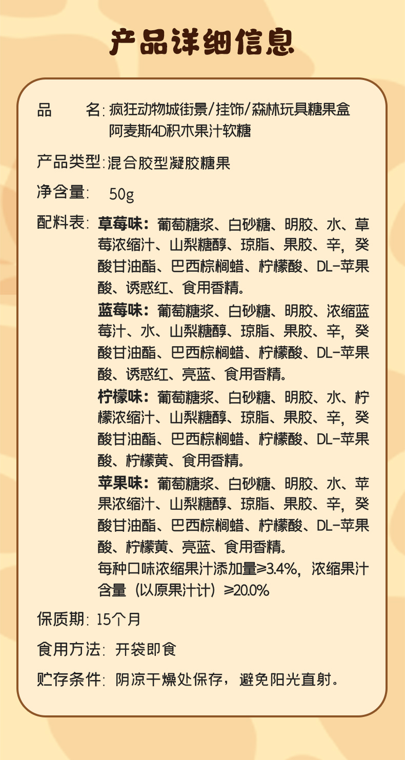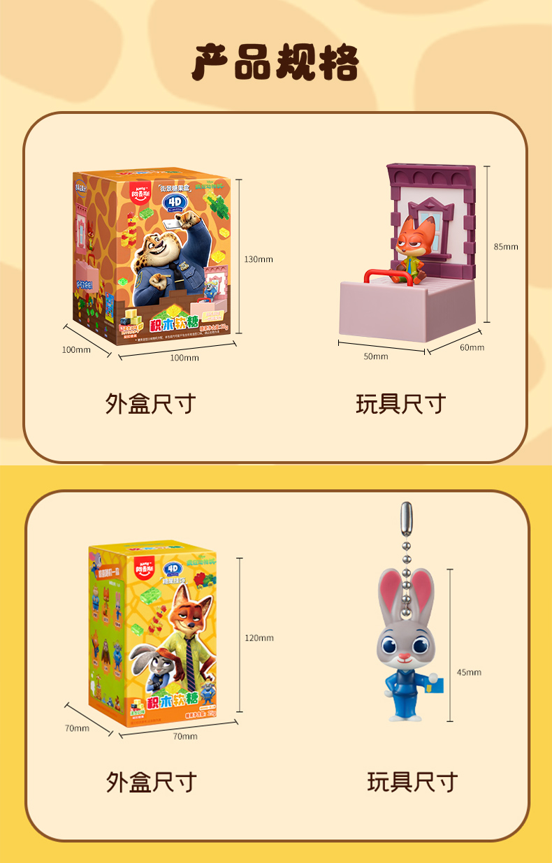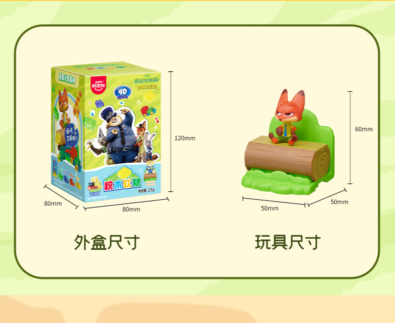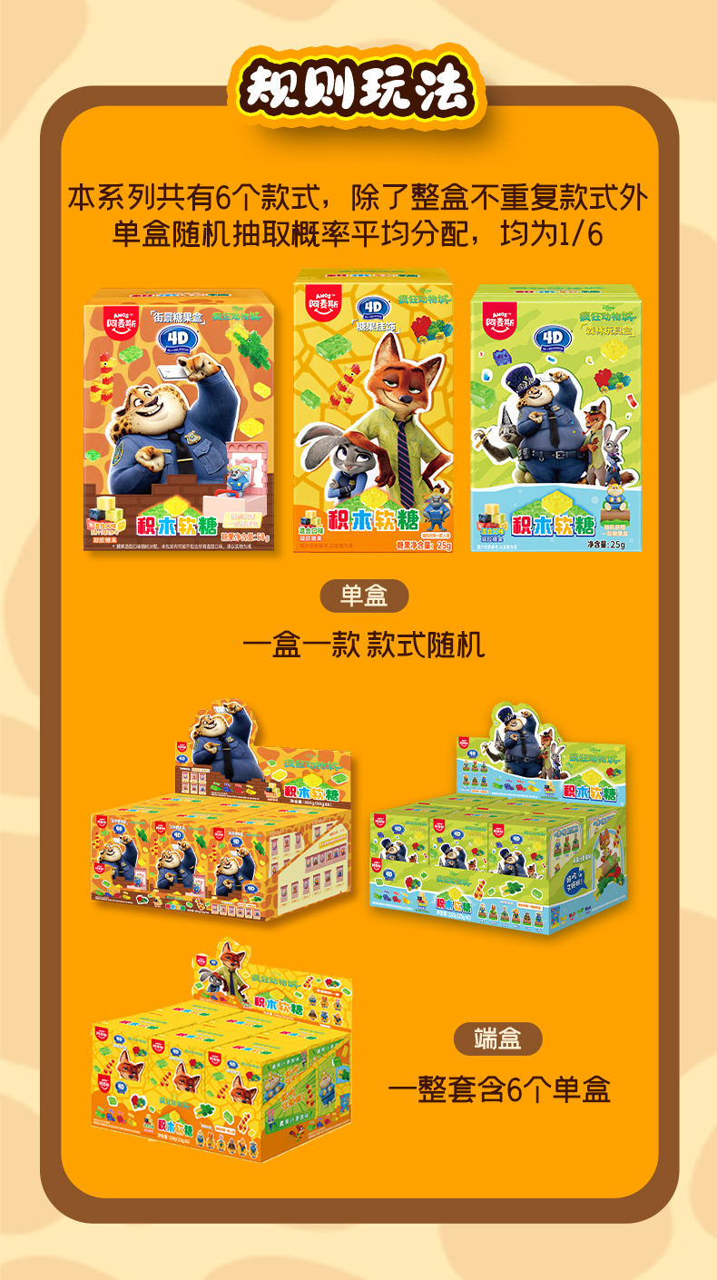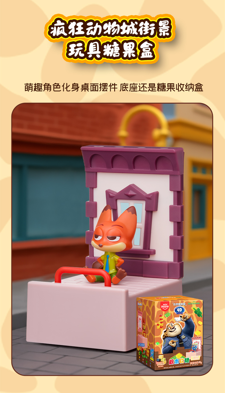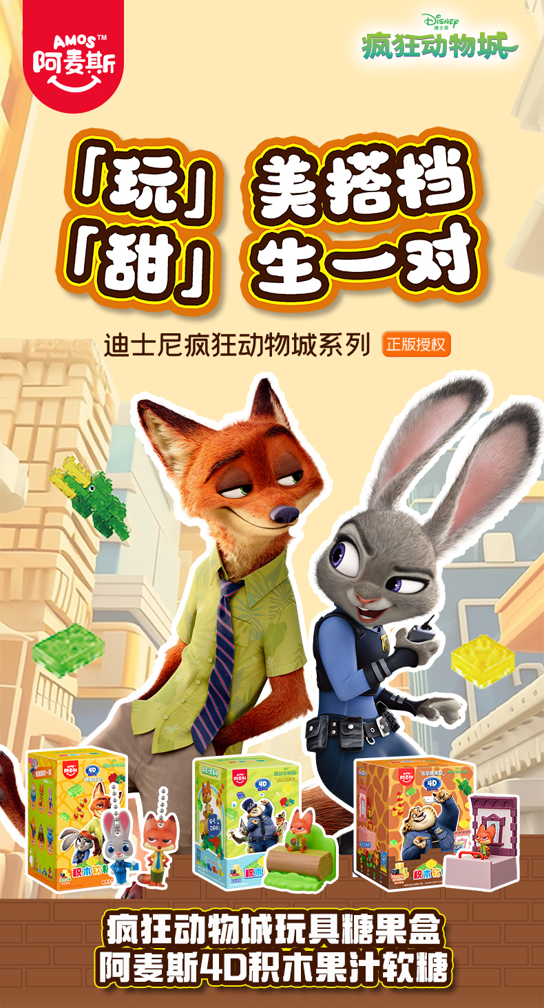 阿麦斯4D积木果汁软糖疯狂动物城ip手办糖果玩具盒
