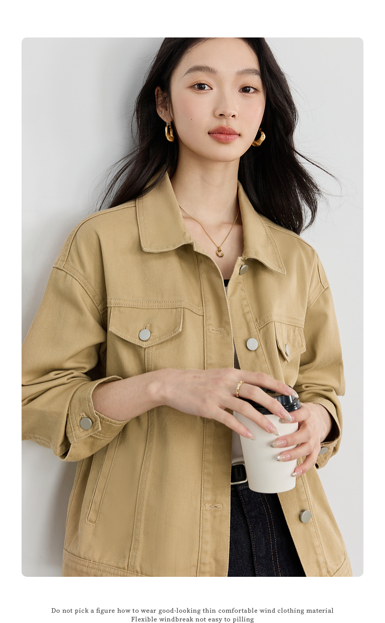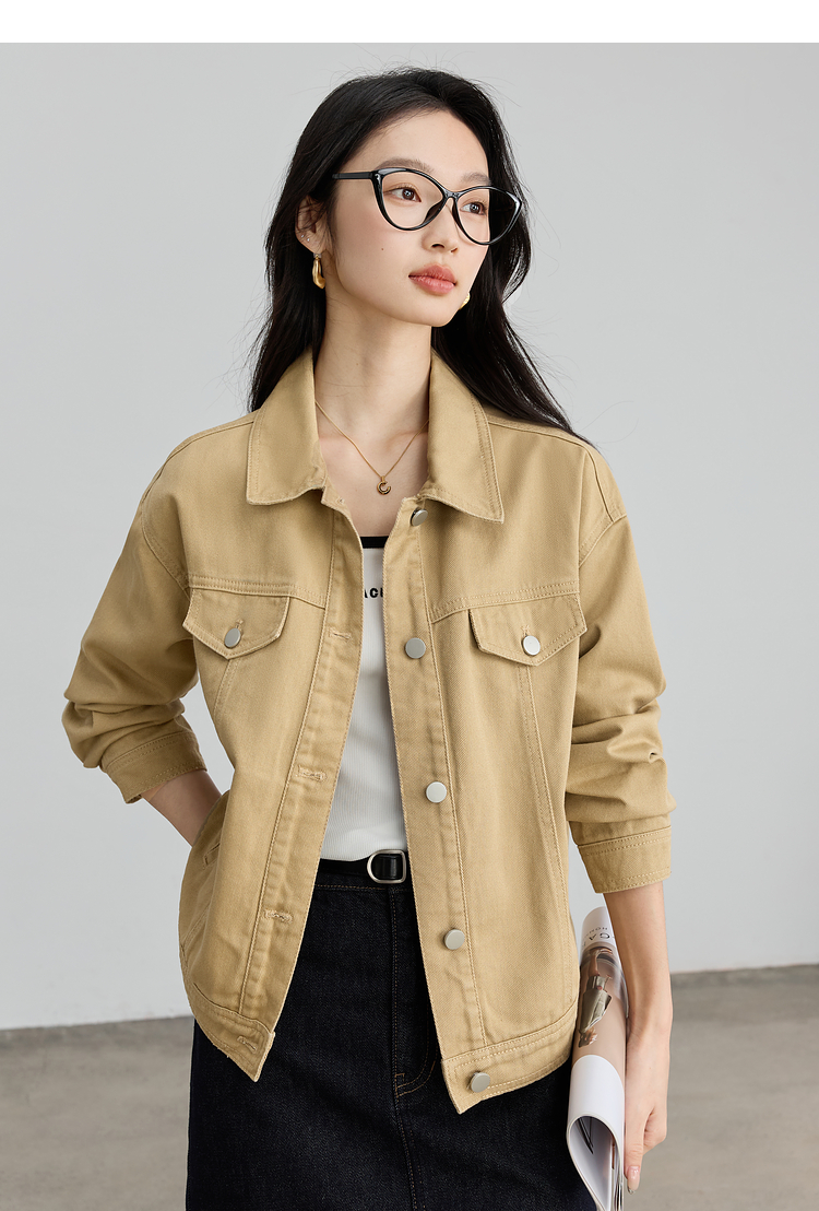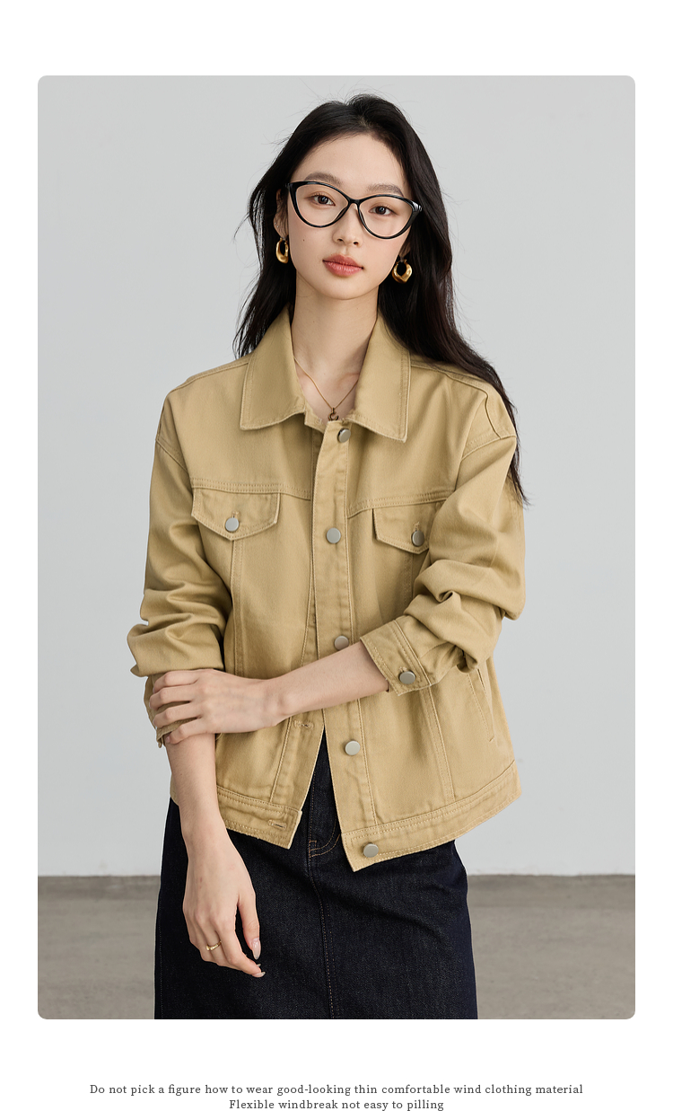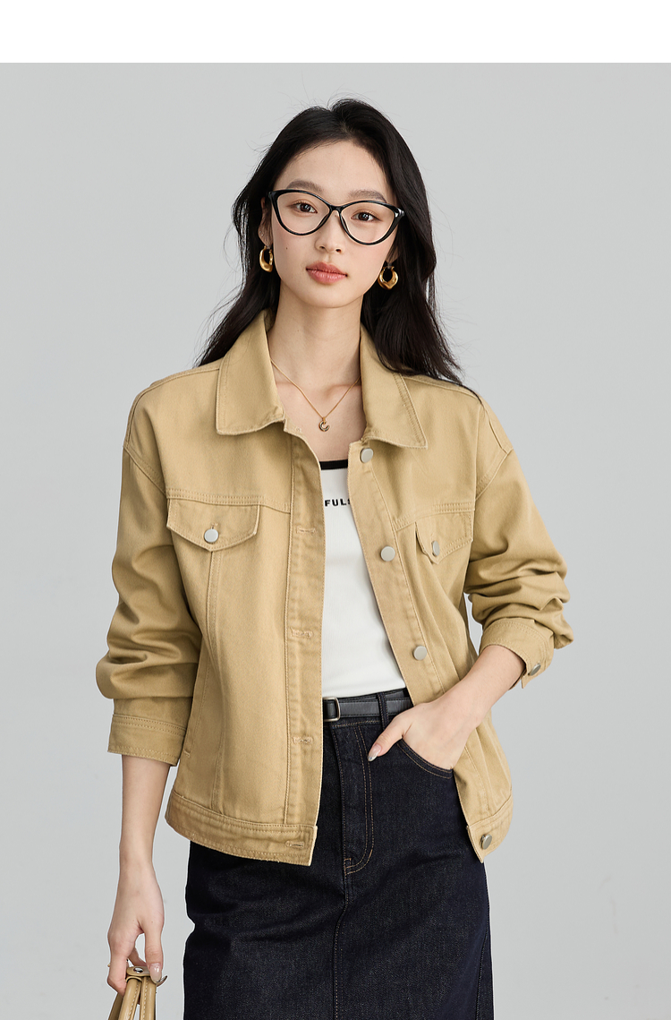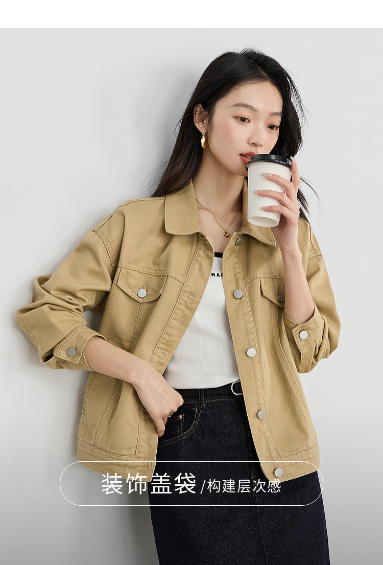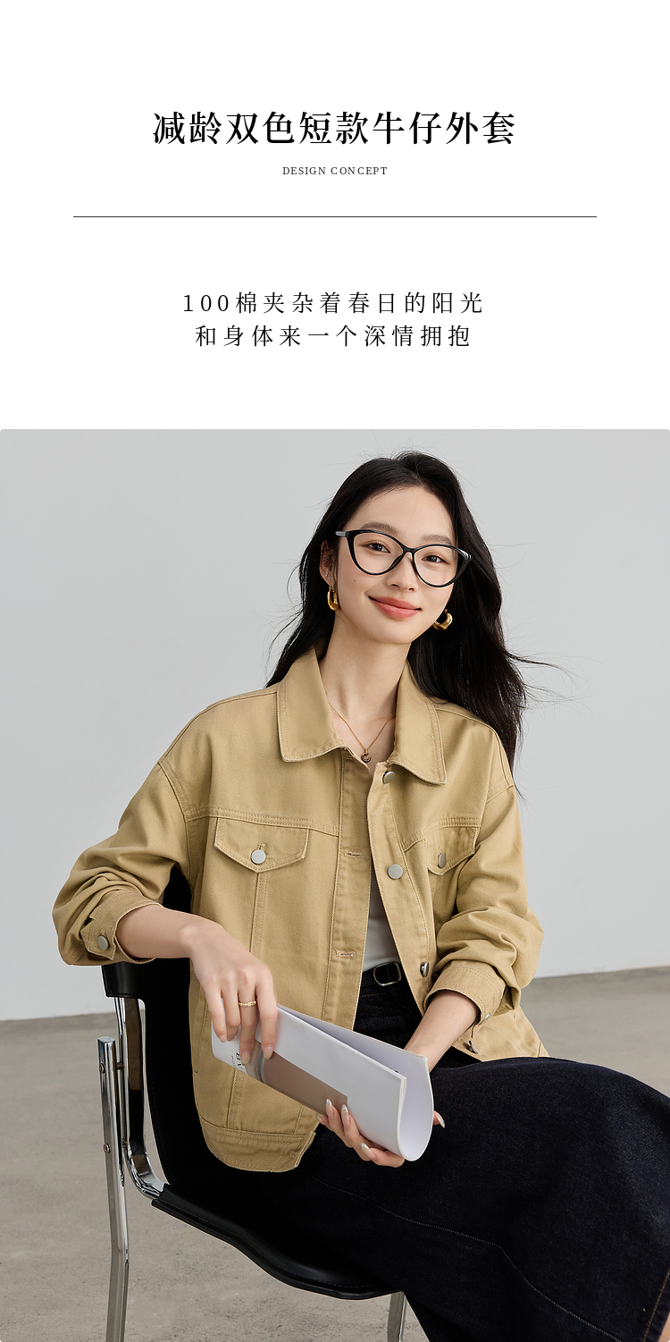 【 1件75折】熙世界休闲工装风牛仔外套短款2025春装新款小个子气质夹克上衣