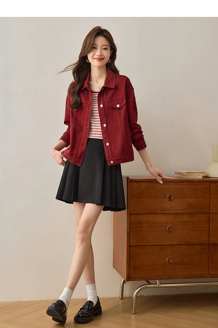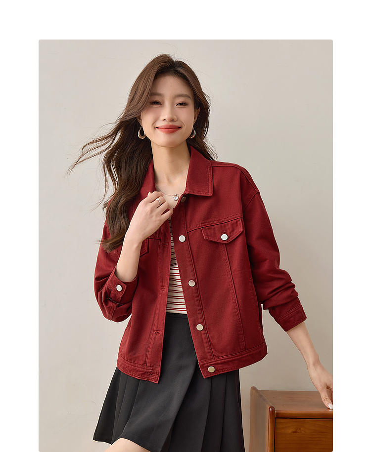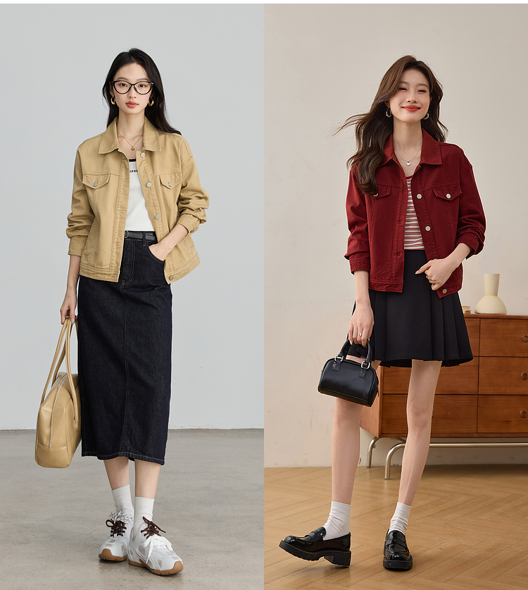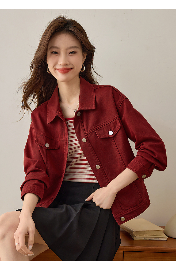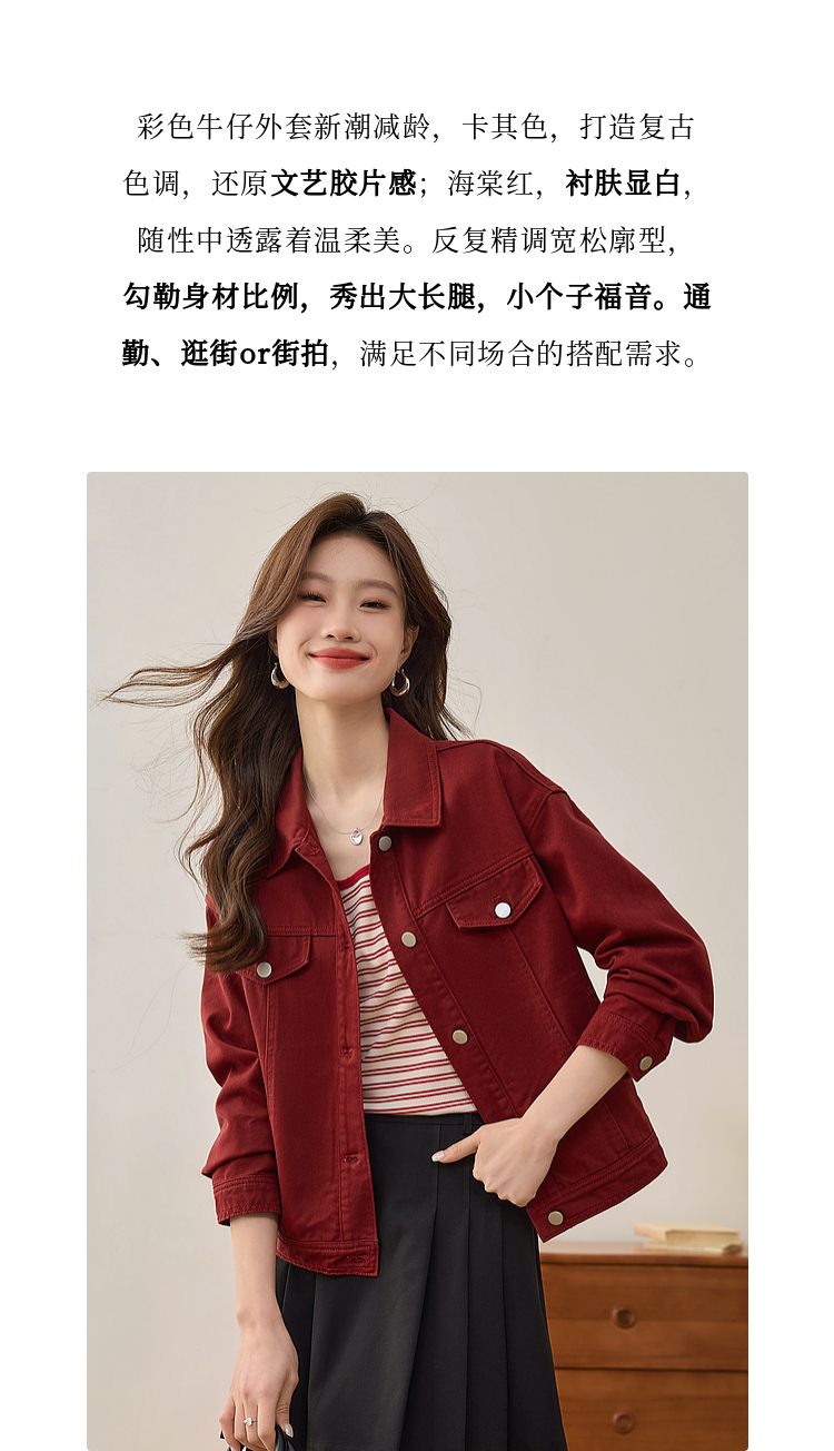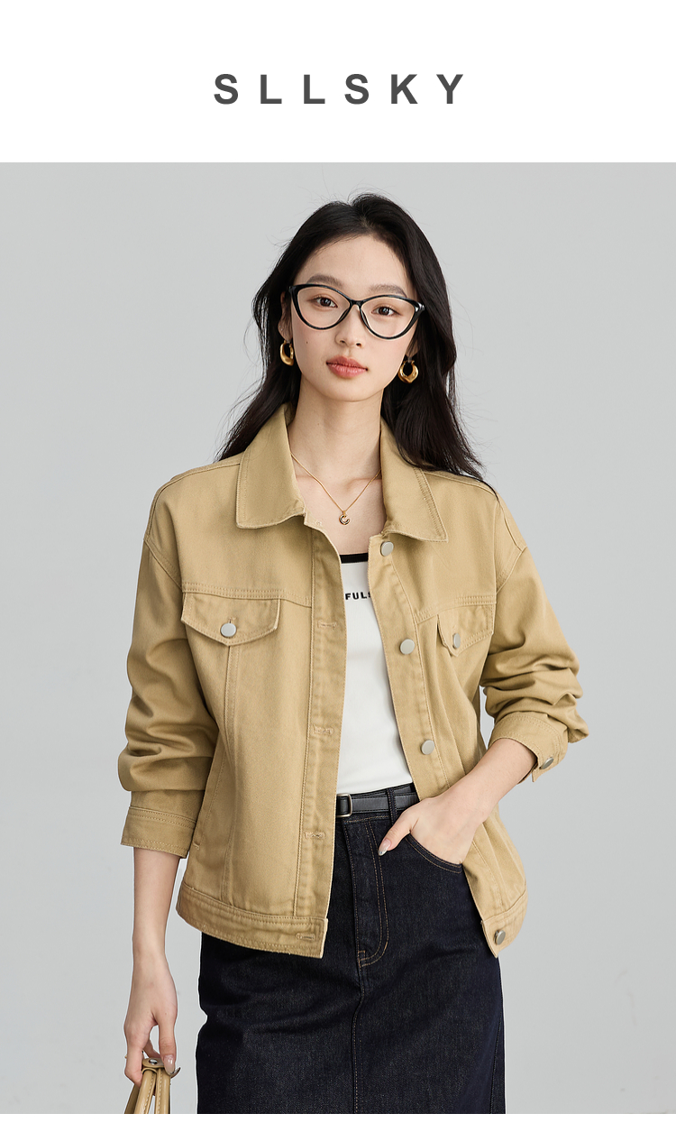 【 1件75折】熙世界休闲工装风牛仔外套短款2025春装新款小个子气质夹克上衣