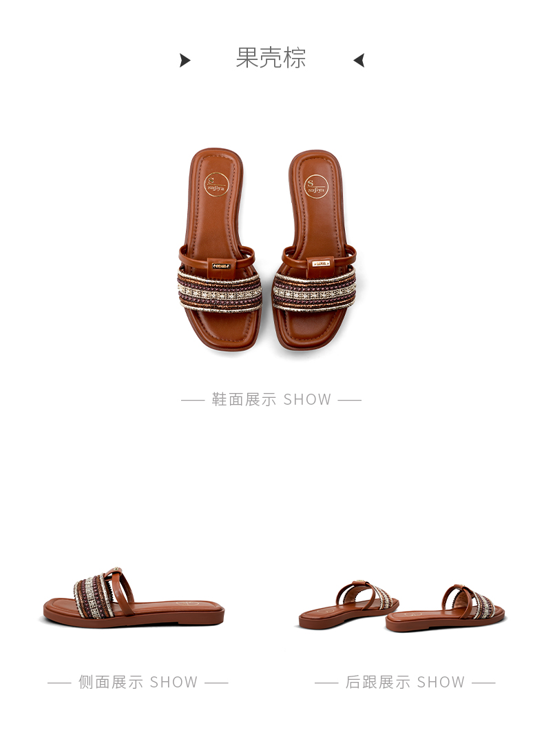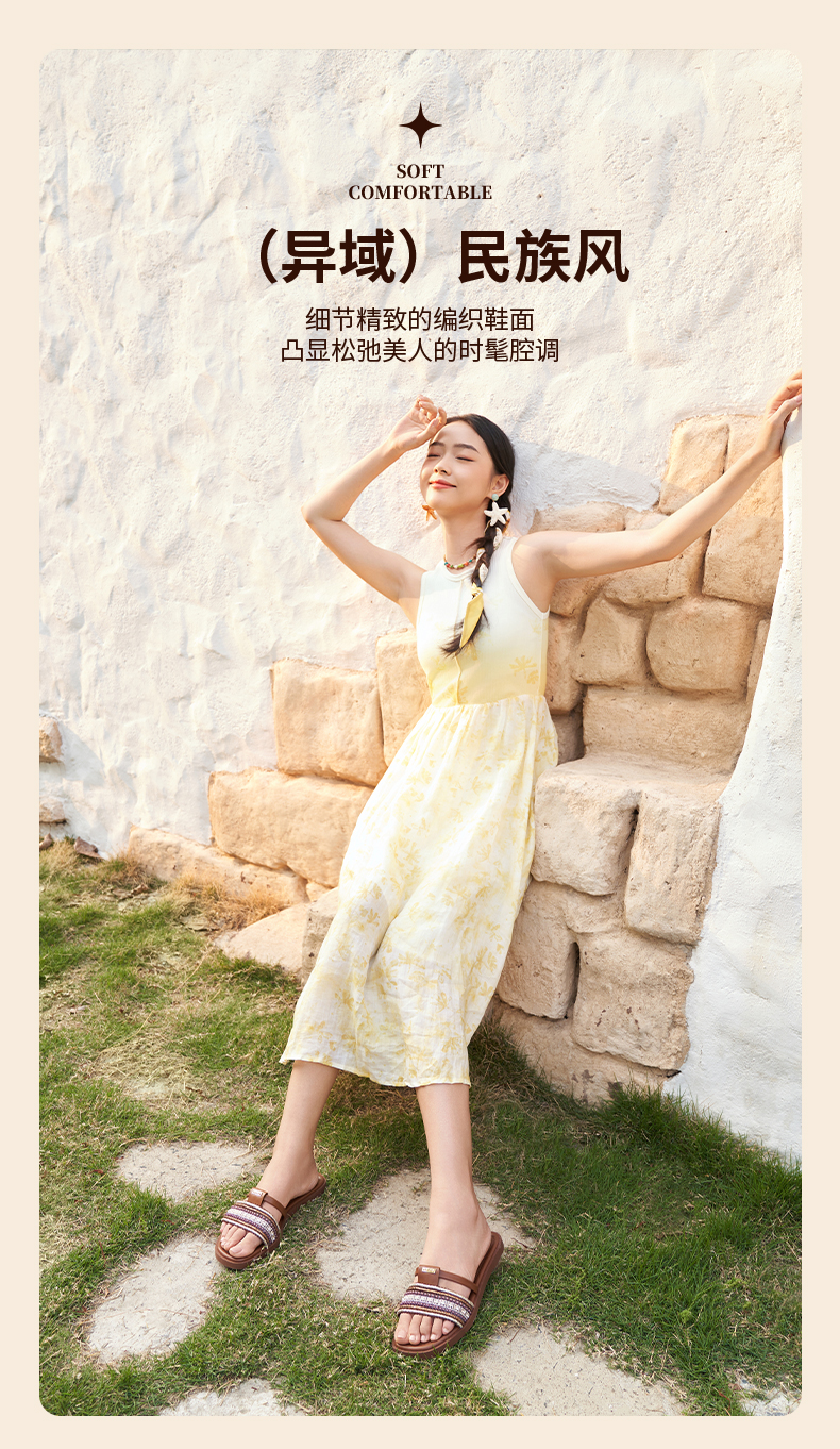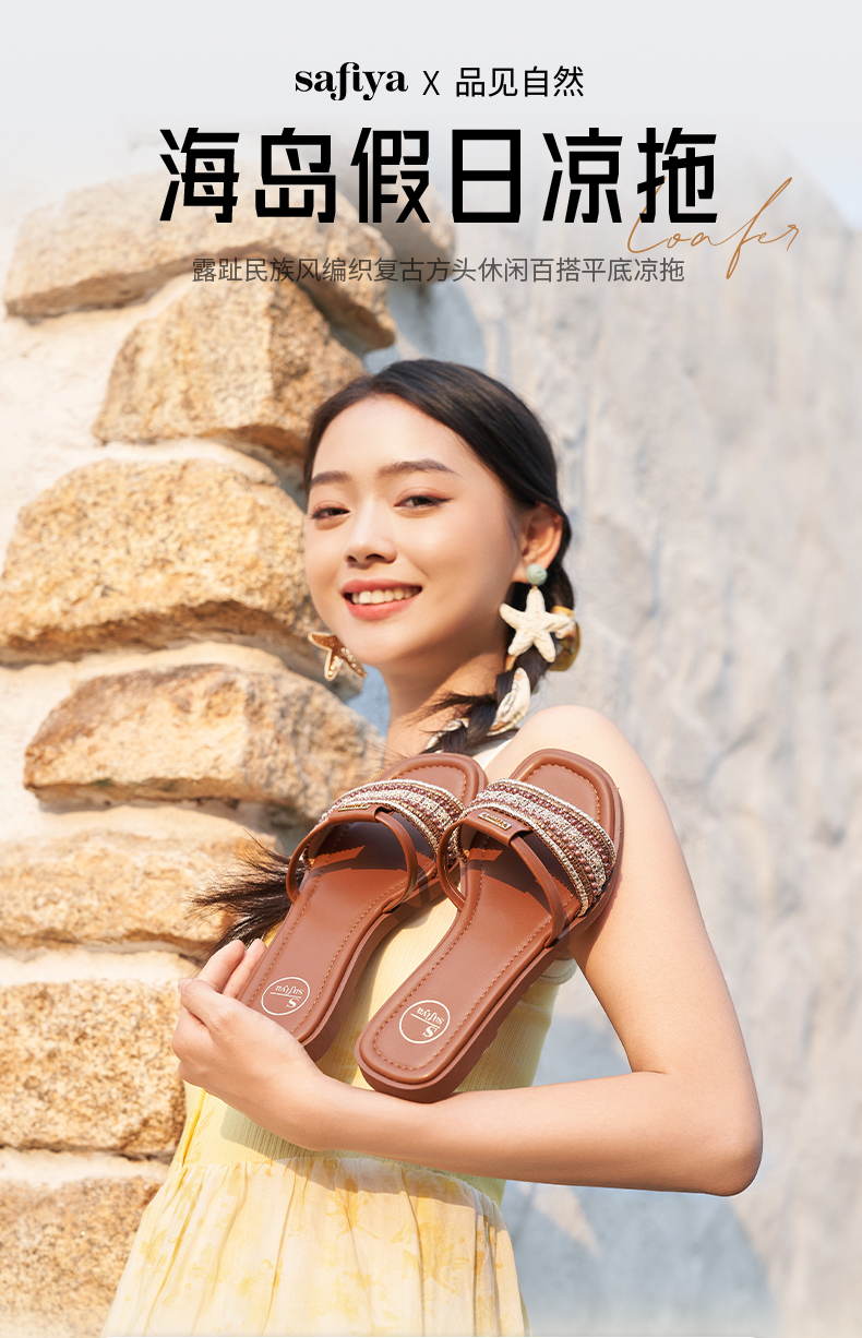 Safiya/索菲娅2025露趾民族风编织复古方头休闲百搭平底凉拖SFD2110366
