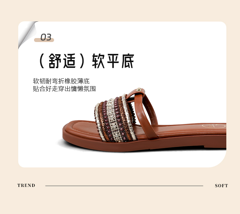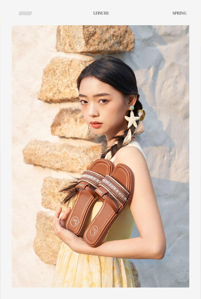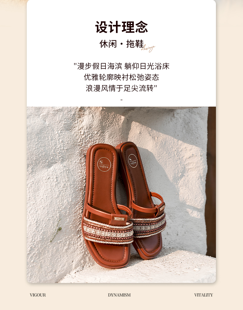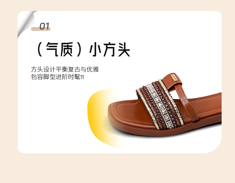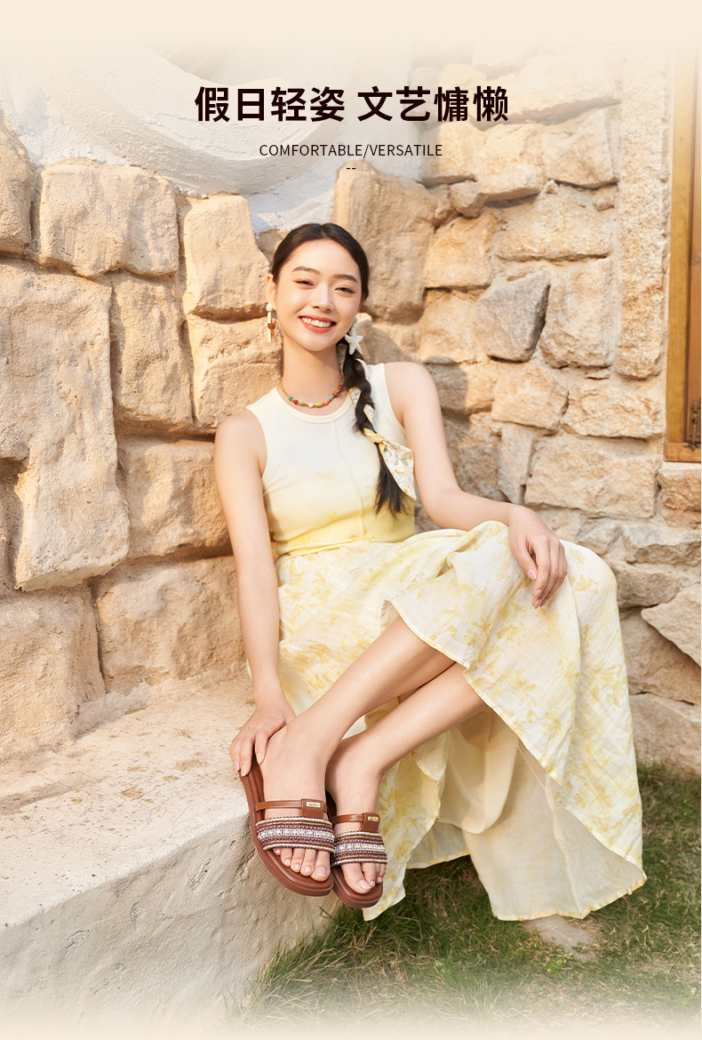 Safiya/索菲娅2025露趾民族风编织复古方头休闲百搭平底凉拖SFD2110366