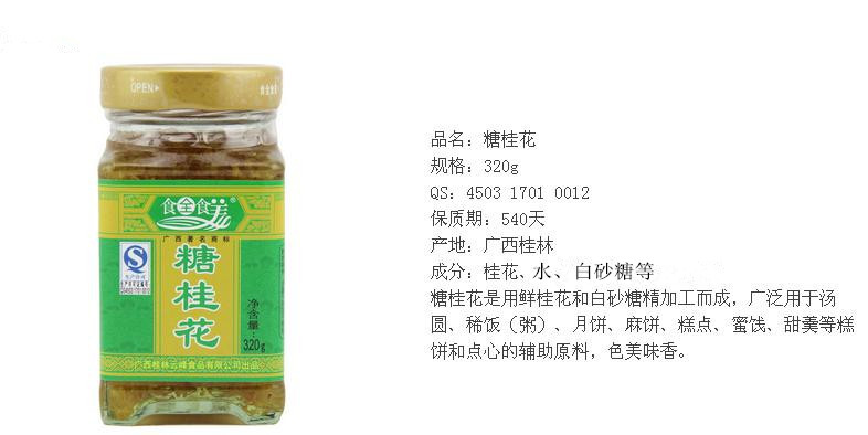 食全食美糖桂花 原装320g 桂花糖 面包糕点桂花糕元宵馅料桂花酱